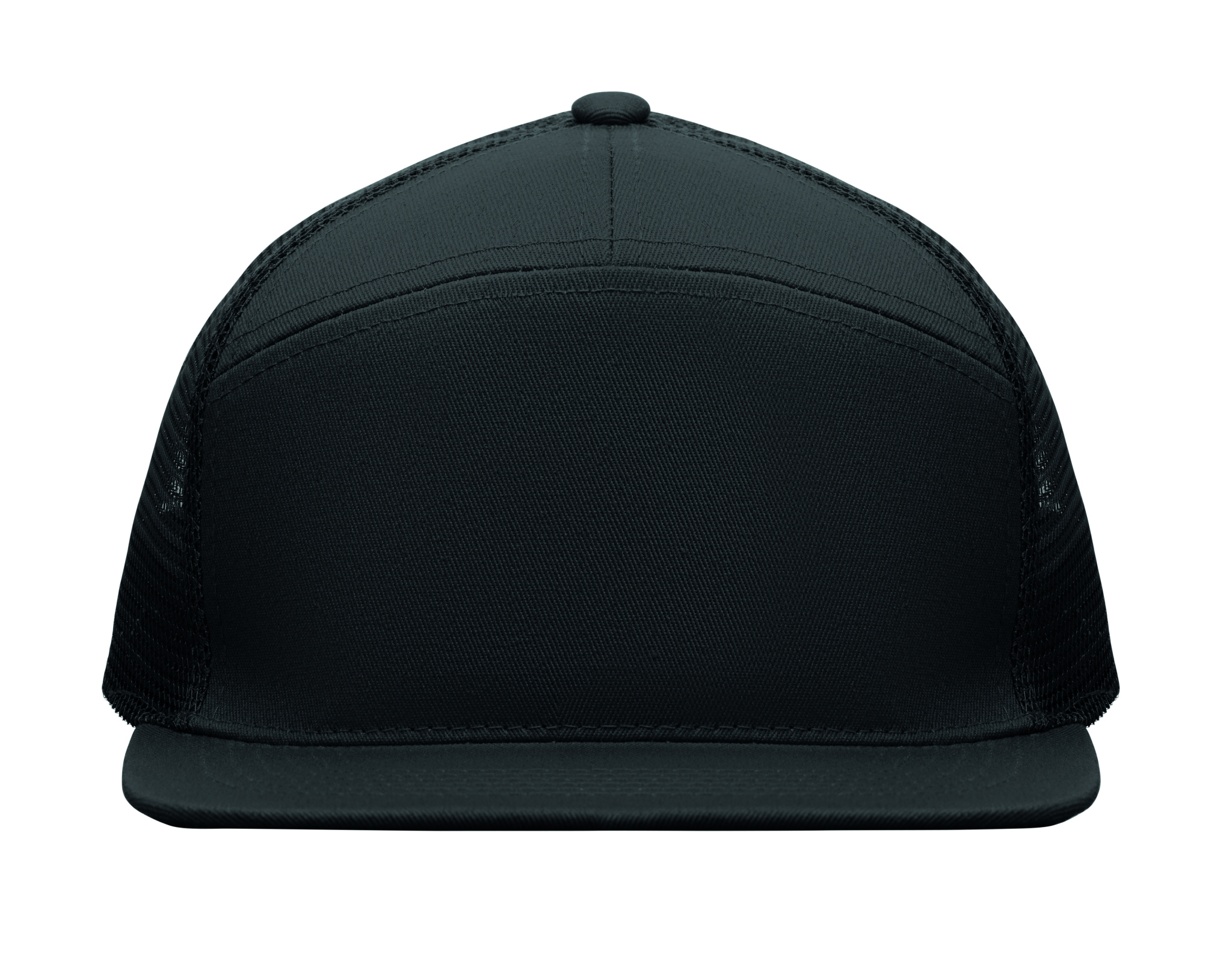 7-paneelinen suoralippainen lippalakki puuvillatwillistä (235 g/m²), polyesteriverkkoselkämys ja muovinen suljin.