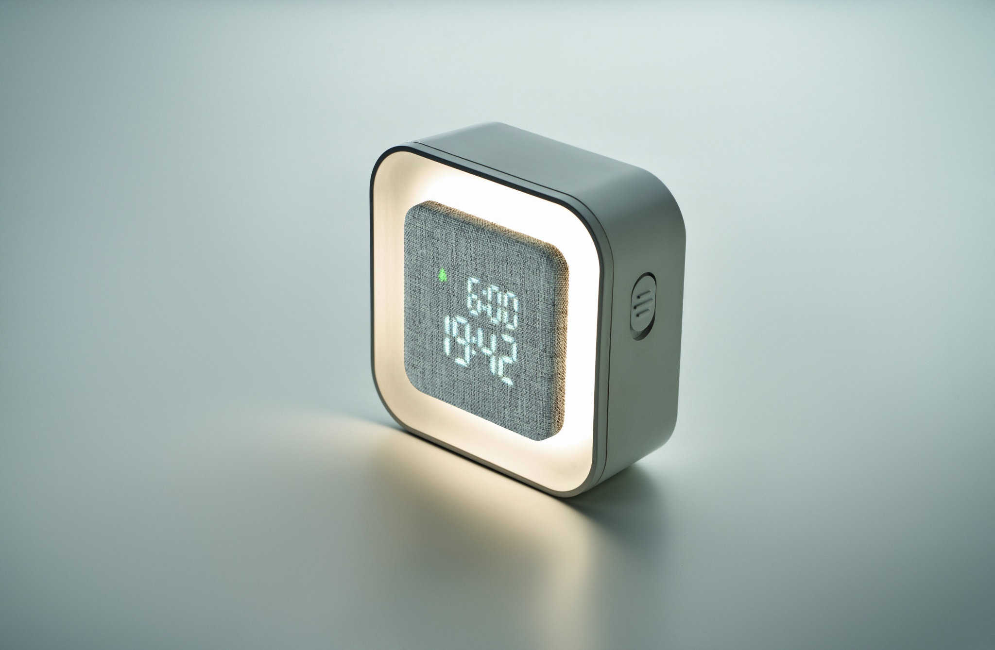 Kierrätetty ABS ja RPET LED-hälytyskello. Näyttää kalenterivuoden vain hälytystilassa. Sisältää säädettävän ympäristön valon. Kalenterivuoden näyttö vain hälytystilassa. Toimii 2 AA-paristolla (ei sisälly toimitukseen) ja/tai USB-C-latauksella.