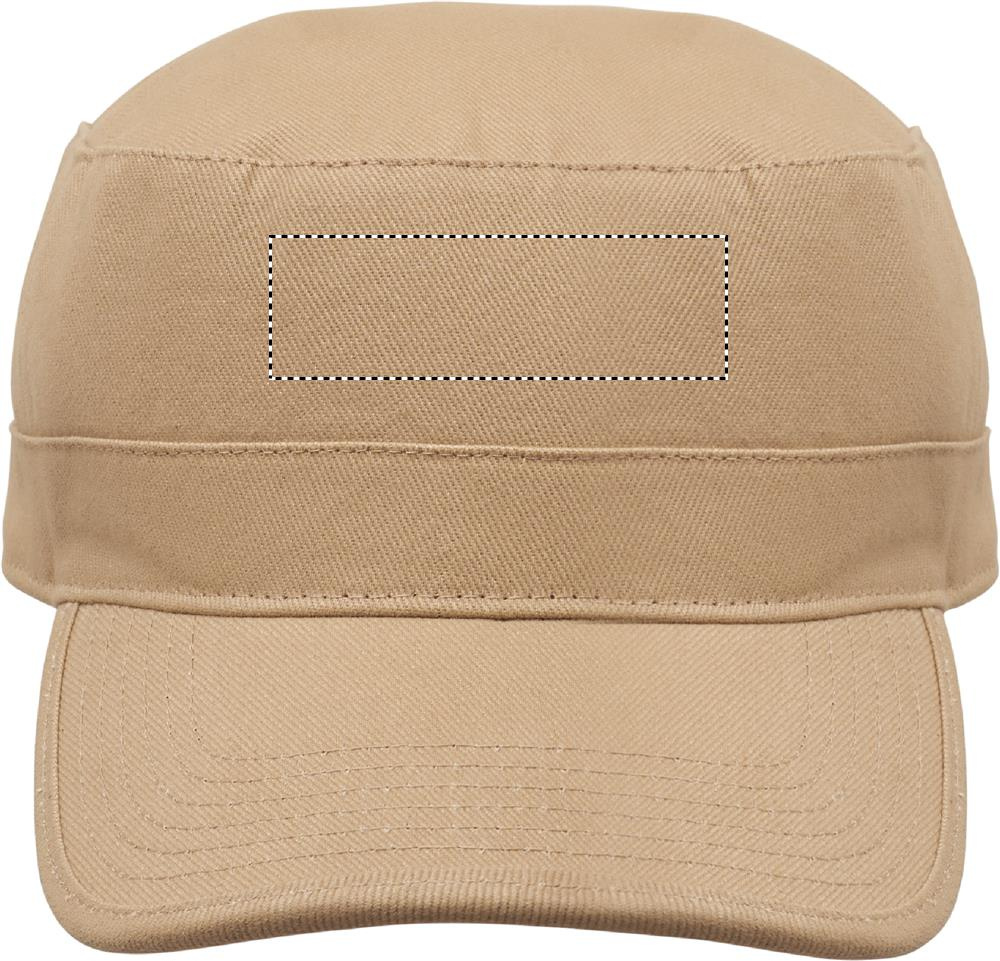 Armylippis 260 g/m² harjattua puuvillaa, polyesterihikinauhalla ja säädettävällä tarranauhakiinnityksellä.