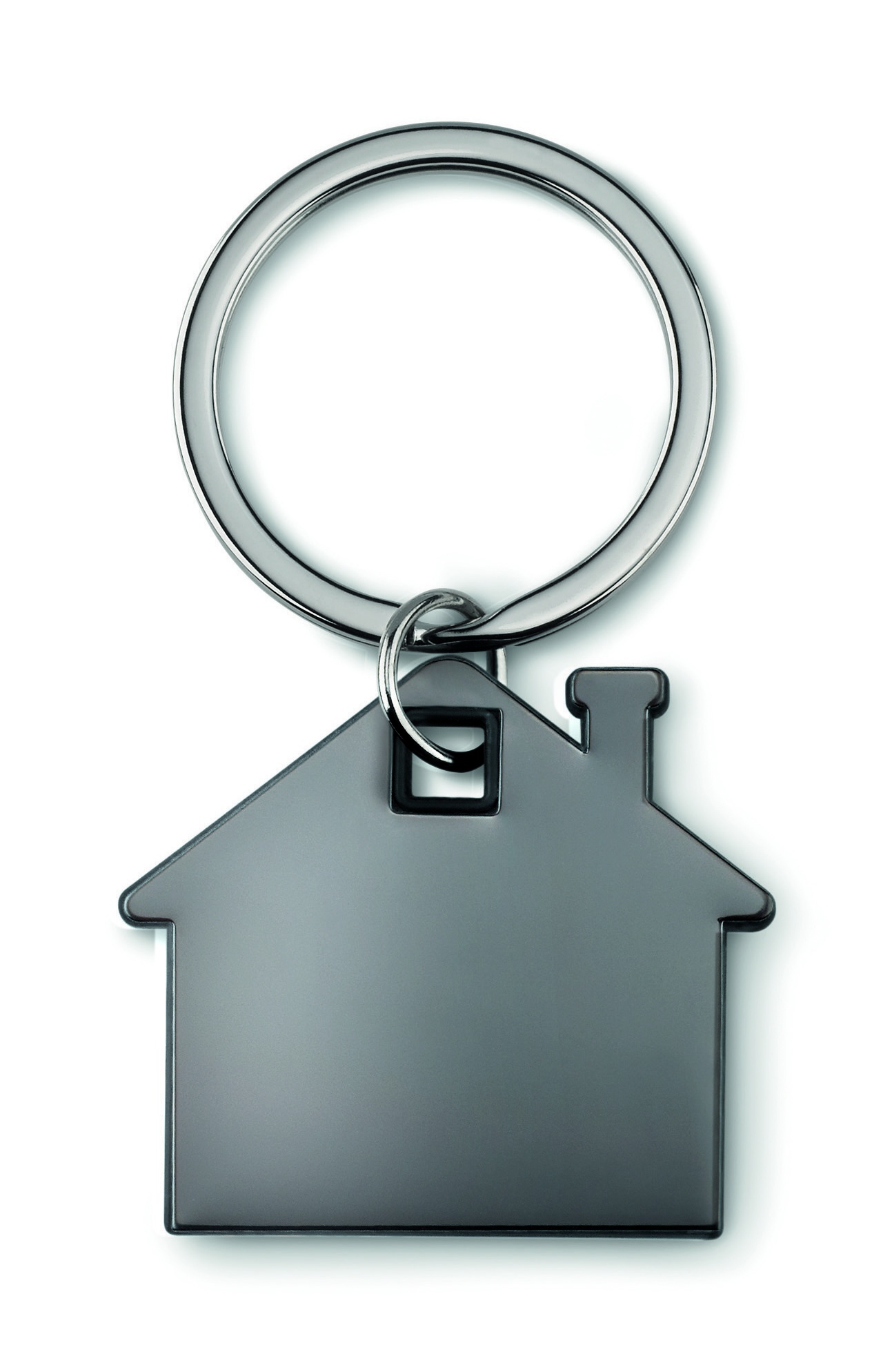 Ruostumattomast teräksestä valmistettu talon muotoinen avaimenperä, talon reunat ABS- muovista.