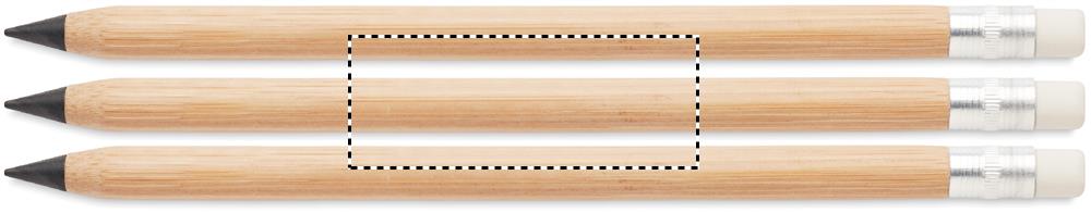 Bambusta valmistettu pitkäikäinen musteeton kynä, jossa on pyyhekumi ja bambuinen korkki. Kynä kirjoittaa grafiittikärjellä, mikä tekee siitä erinomaisen ympäristöystävällisen vaihtoehdon perinteiselle kynälle. Koska bambu on luonnontuote, sen väri ja koko voivat vaihdella hieman tuotteittain, mikä saattaa vaikuttaa merkkauksen lopputulokseen.