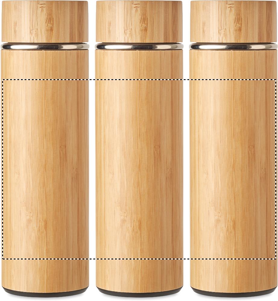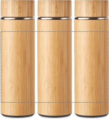 Kaksiseinäinen 400 ml ruostumattomasta teräksestä valmistettu termospullo, bambu kuorella ja teesiivilällä. Tuote on vuoto vapaa. Luonnollisen materiaalin (bambu) vuoksi, tuotteiden värissä/ koossa saattaa olla erinäisyyksiä ja tämä voi vaikuttaa painatuksen lopputulokseen.