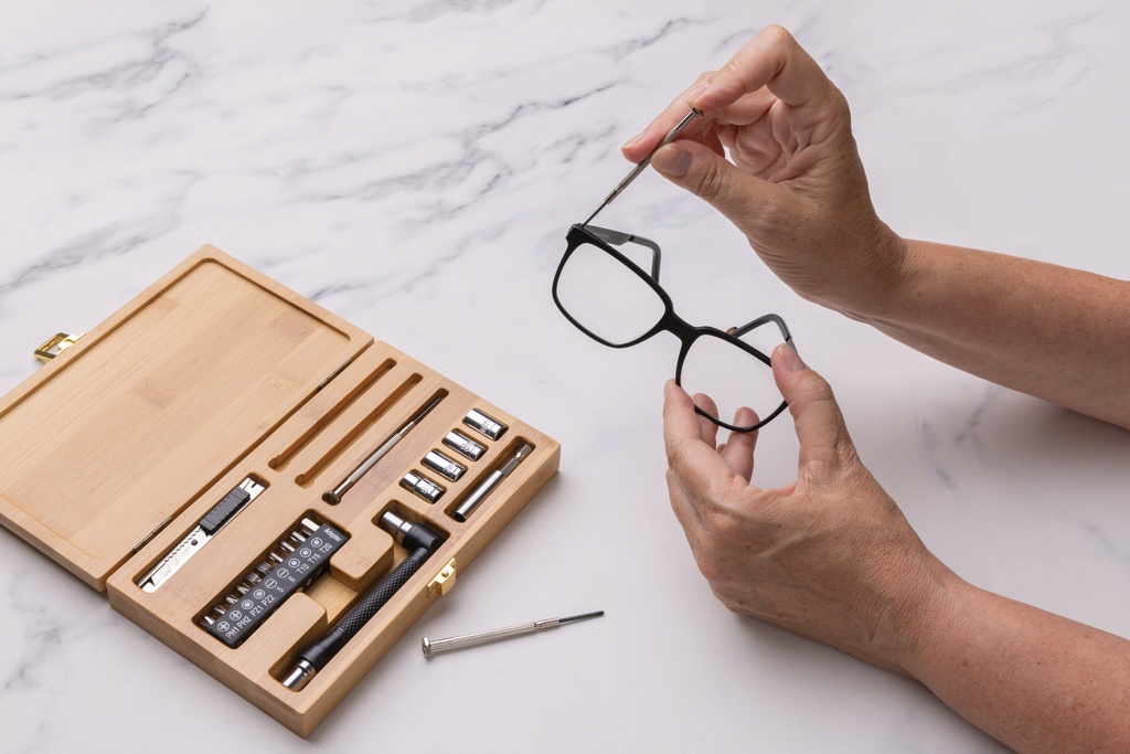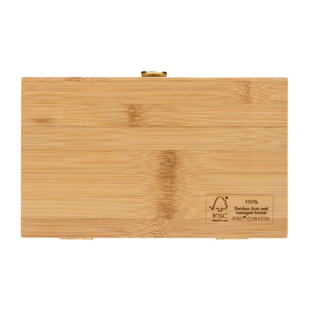 21-osainen työkalusetti ylellisellä FSC® 100% bambusta valmistetulla kotelolla. Setissä on 3 ruuvimeisseliä, 10 hylsyä pidikkeessä, 4 kärkeä, 1 kahvan, 1 liittimen ja 1 pienen leikkurin. Pakattu FSC® mix kraft-pakkaukseen.