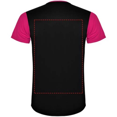 Helposti kuivuva, tekninen ja hengittävä kangas. Pyöreä kaula-aukko. Kahden polyesterikankaan yhdistelmä selässä ja olkapäissä. Bird's eye -kangas edessä ja hengittävä 3D-verkkokangas takana. Kangas, joka on suunniteltu imemään kosteutta. Sivuilla ja olkapäillä koristeellinen siksak-selkätikki. Selkäosa hieman pidempi. Irrotettava etiketti.