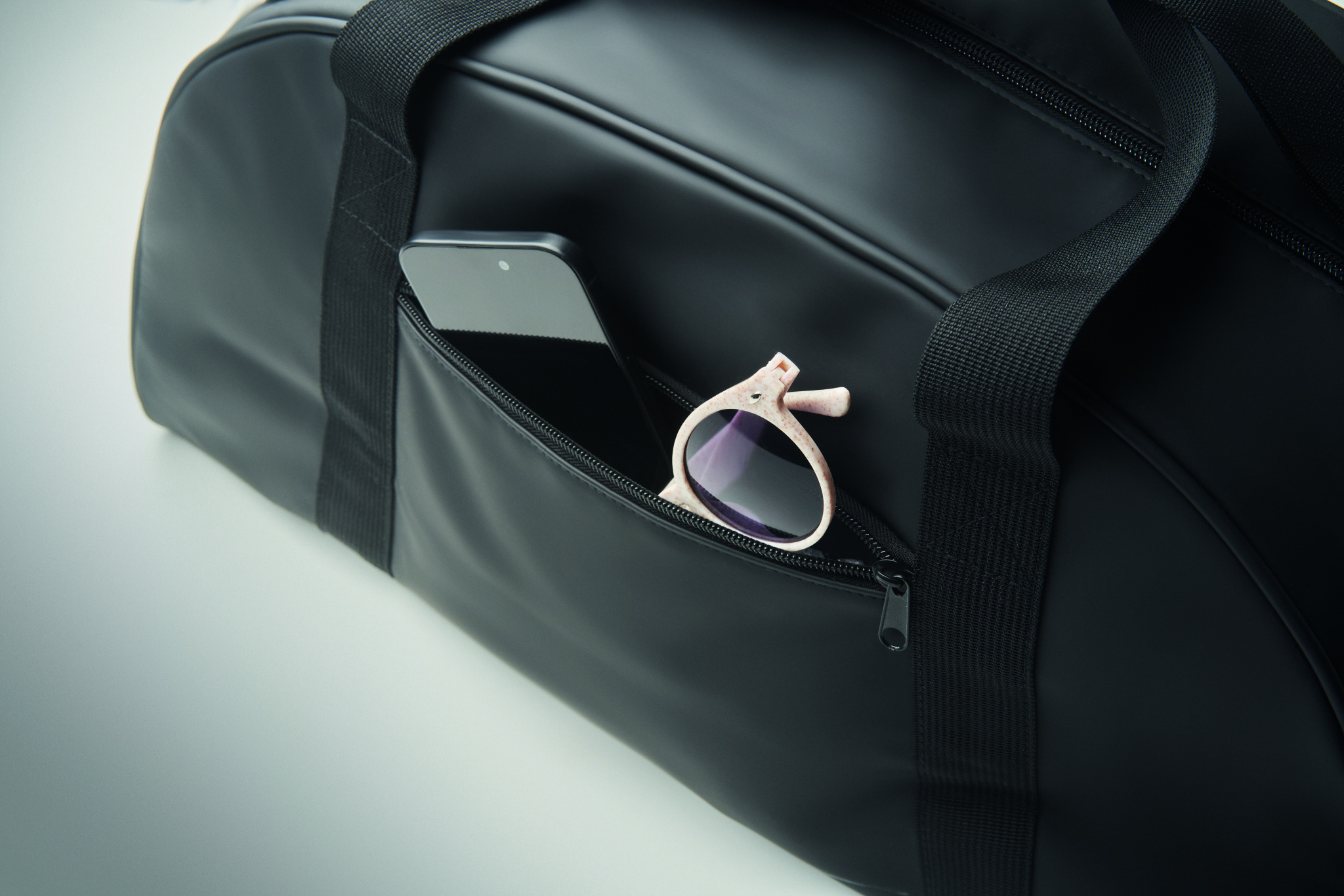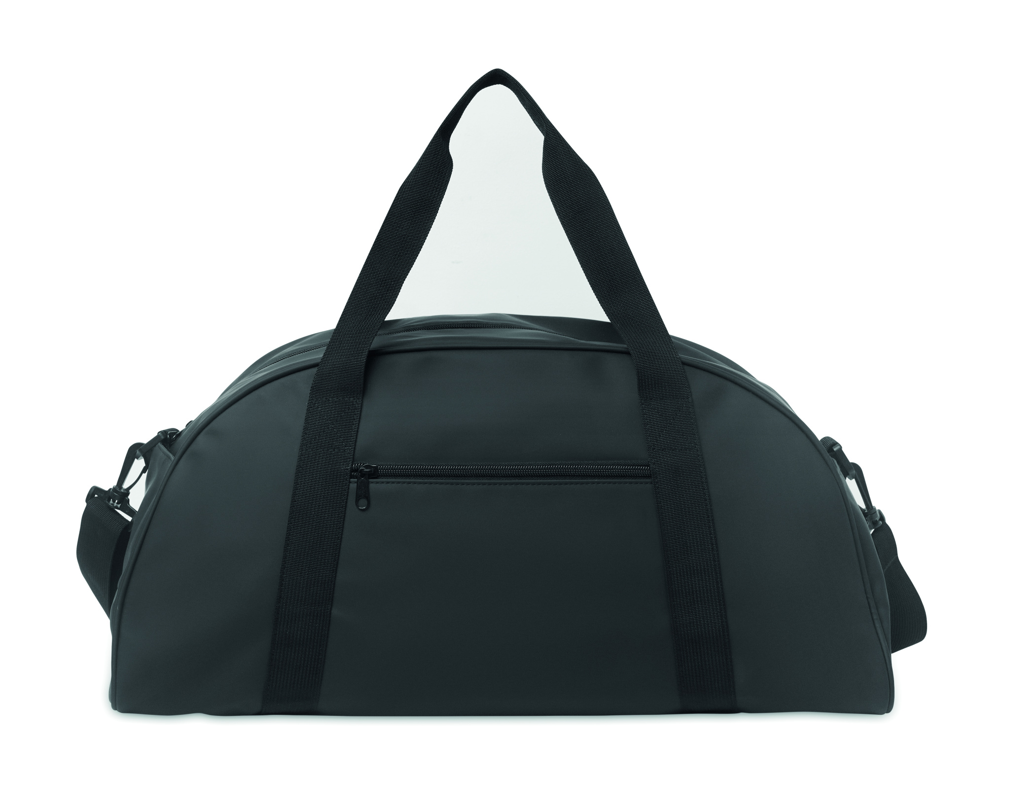 Duffle laukku pehmeää PU:ta, jossa pohjavahvike. Yksi päälokero, vetoketjullinen etutasku ja vetoketjullinen sisätasku. 210D RPET polyesterivuori. 2 kahvaa ja yksi säädettävä ja irrotettava olkahihna