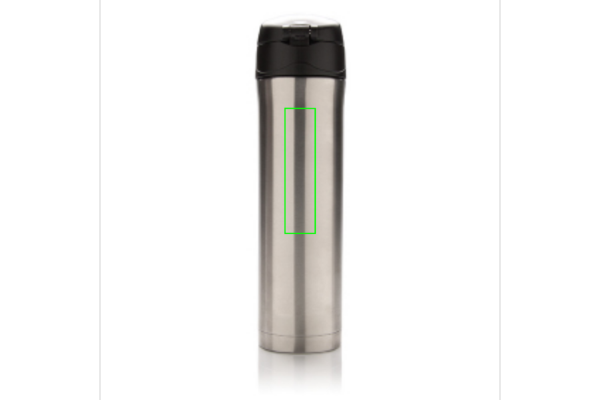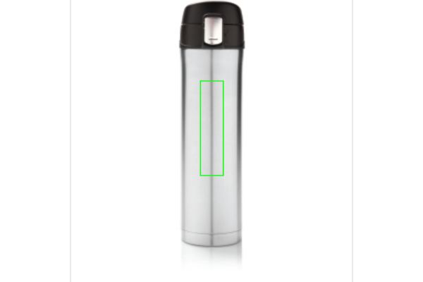 Kaksiseinämäinen vakuumipullo ruostumattomasta teräksestä, mikä pitää juomasi lämpimänä jopa 5 tuntia ja viileänä jopa 15 tuntia. Kansi on lukittava, mikä estää vuotojen mahdollisuutta. Kansi on helppo pitää puhtaana ja se voidaan pestä astianpesukoneessa. Tuotteen muotoilu mahdollistaa käytännöllisen ja turvallisen juomisen suoraan pullosta. Sopivan kokoinen auton juomatelineeseen. Kapasiteetti: 450ml.