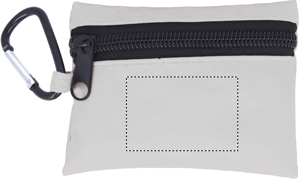 Ensiapupakkaus sisältää sakset, kosteuspyyhkeen, sideharson, 3 vanupuikkoa ja 5 kappaletta laastareita. Pakattuna polyesteriseen pussiin, varustettu karabiinikoukulla. Karabiinikoukkua ei ole tarkoitettu kiipeilemiseen (ei ammattikäyttöön)