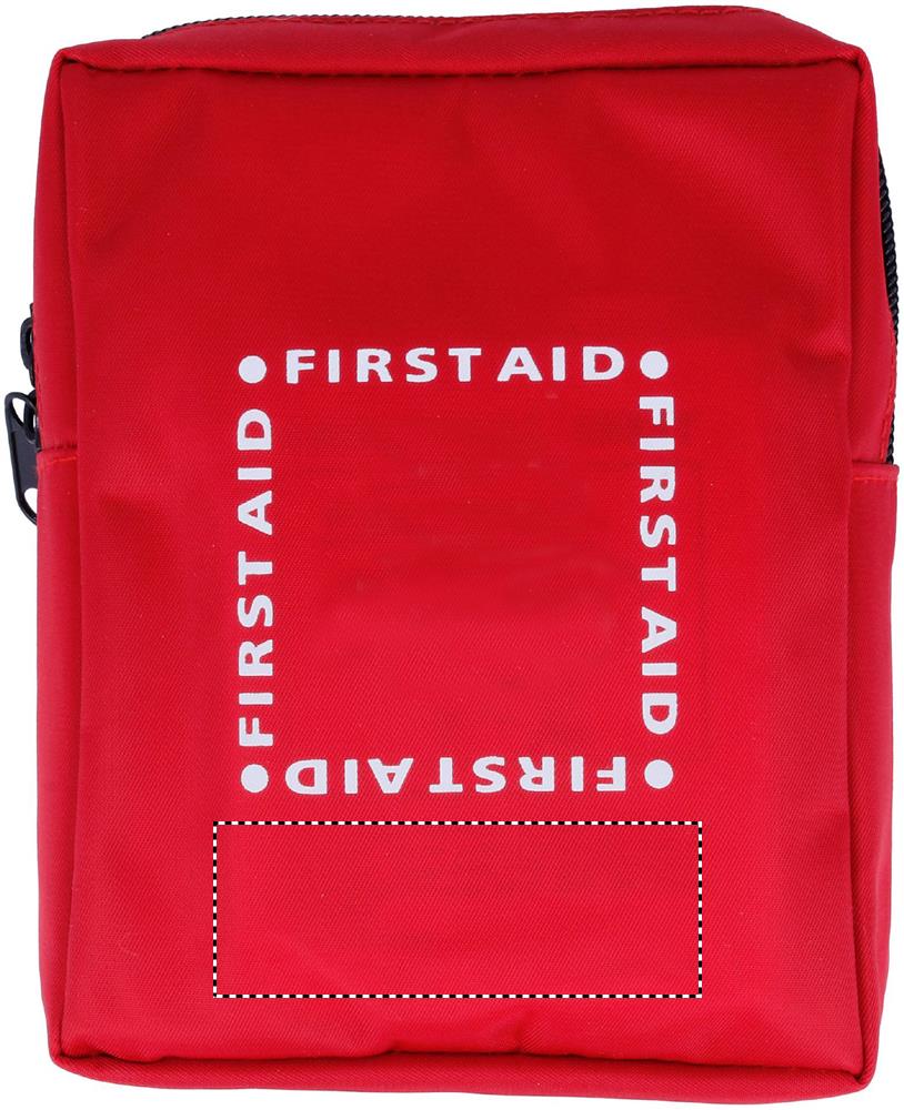 Ensiapupakkaus. Sisältää 1 hätäpeiton, pinsetit, 10 vanupuikkoa, 1 parin käsineitä, 2 haavatyynyä, 1 teipin ja kolmionmuotoisen siteen. 4 teippisidettä, alkoholi desifiontityynyt ja 1 lyhyen ja pitkän siteen. Pakattuna 230D polyesterilaukkuun.