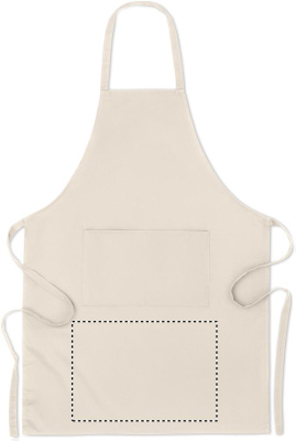 200 gr/m² orgaanisesta puuvillasta valmistettu esiliina, 2 etutaskulla.