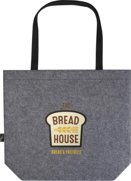 Iso kulmatuellinen kassi pehmeästä, kestävästä ja korkealaatuisesta GRS-sertifioidusta kierrätyshuovasta. Kassin suuressa päälokerossa on runsaasti tilaa (jopa 20 litraa), sen vahvistetut kudotut puuvillakahvat (30 x 2,5 cm) takaavat parhaan kantomukavuuden, ja sen yläosassa on sulkemisnappi.