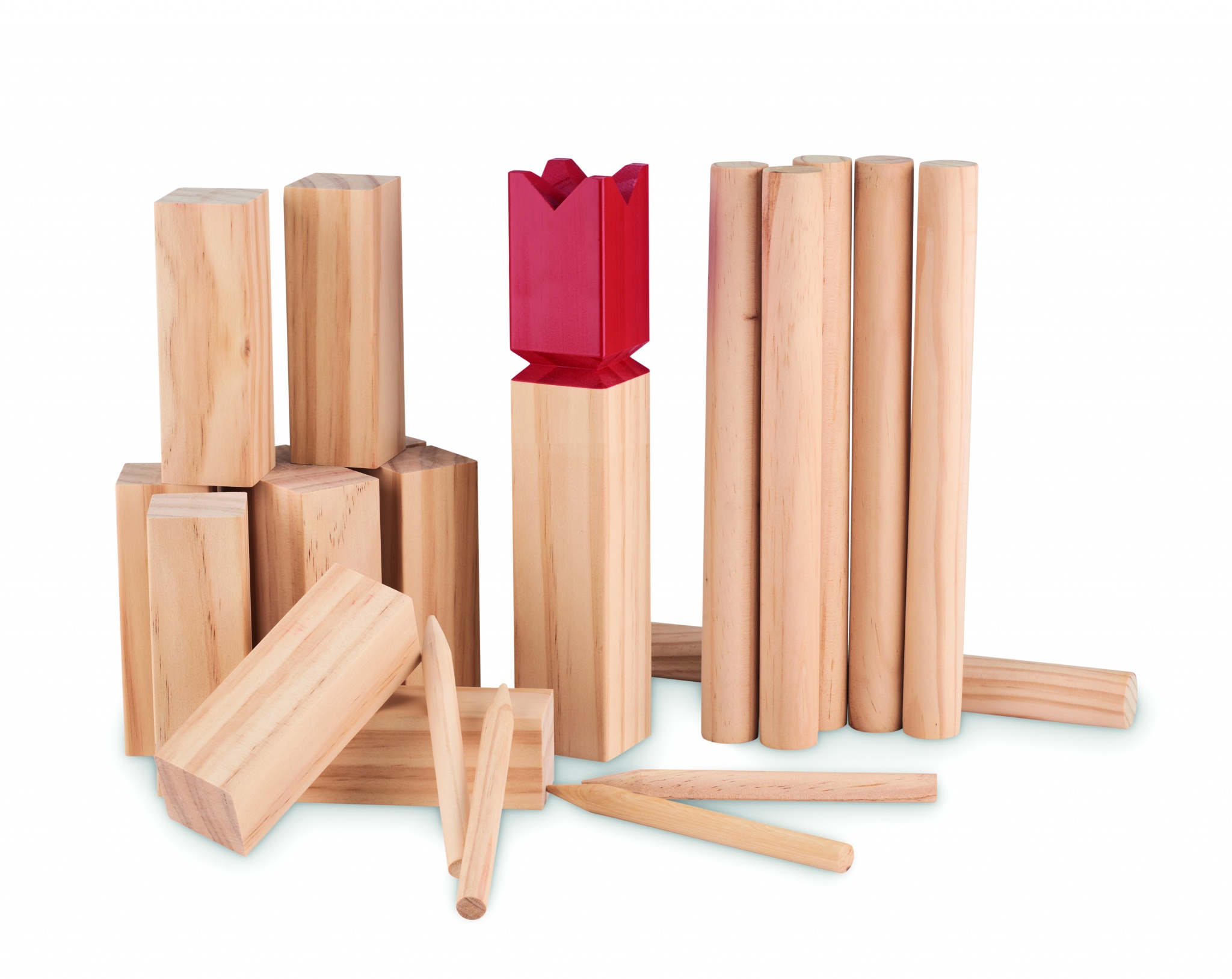"Männystä valmistettu heittopeli puuvillapussissa. Tämä skandinaavista alkuperää oleva peli on hauska lapsille, perheille tai kaveriporukalle. Tavoitteena on kaataa isommat puukepit heittelemällä pienempiä niitä kohti. Keskikappale ""kuningas"" kaadetaan viimeisenä, pelaaja joka kaataa kaikki puukepit ensimmäisenä ennen vastustajaa voittaa. Sisältää 10 kpl lyhyttä nelikulmaista puukeppiä, 4 kpl terävää puukeppiä, 6 kpl pyöreää puukeppiä ja 1 Kuningas kepin."