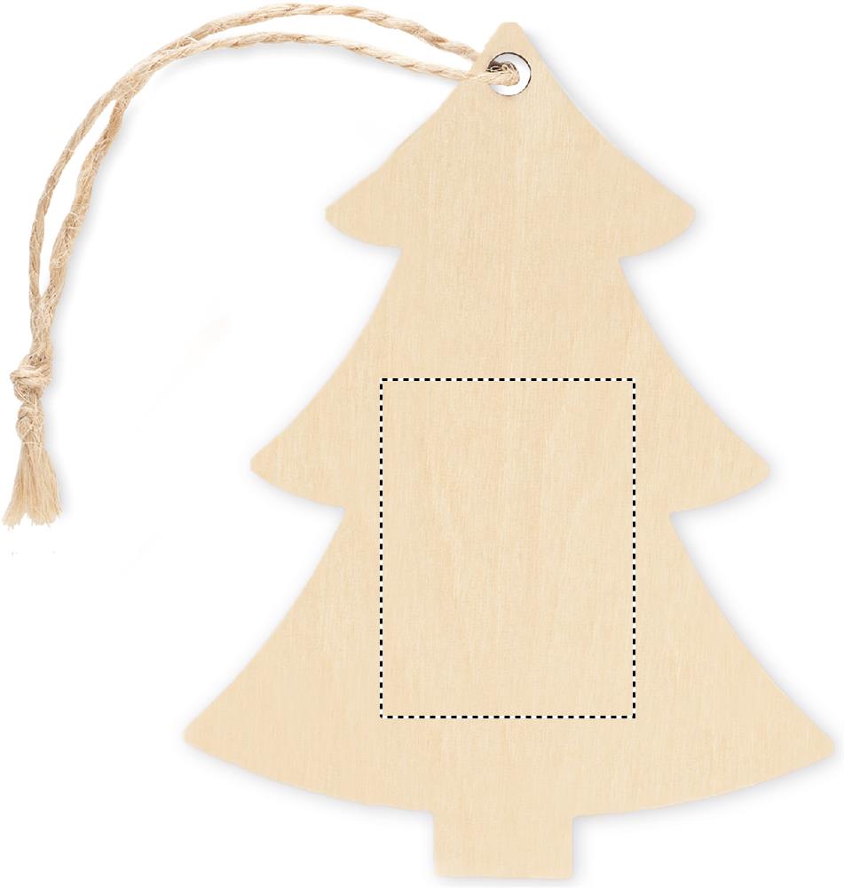 Vanerista valmistettu joulukoriste juuttiköydellä. Sublimaatiopainatus ei tue valkoisen värin painatusta.