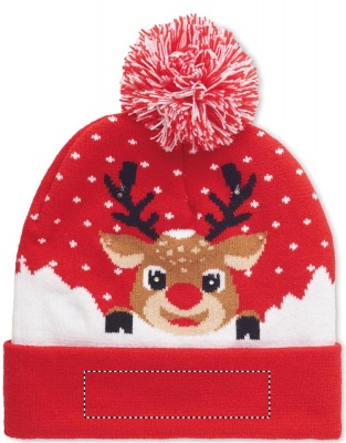Jouluinen neulottu pipo, jossa 6 LED-valoa. Materiaali pehmeää joustavaa akryyliä.