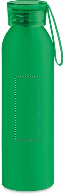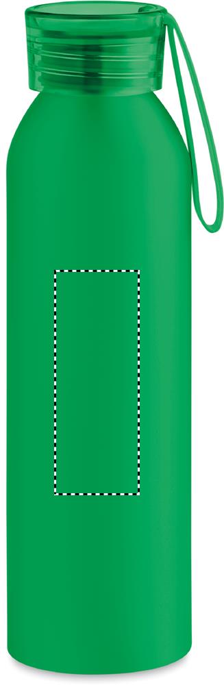 Yksiseinäinen alumiinipullo kierrätetystä alumiinista muovikorkilla ja silikoniripustimella. Tilavuus: 600ml. Yksinkertainen ja kevyt pullo on ihanteellinen päivittäiseen käyttöön, ja se sopii erinomaisesti lisäämään brändisi näkyvyyttä. On tärkeää pysyä nesteytettynä päivän aikana, joten täytä tämä pullo vedellä ja pidä se aina mukana! Vuotamaton.