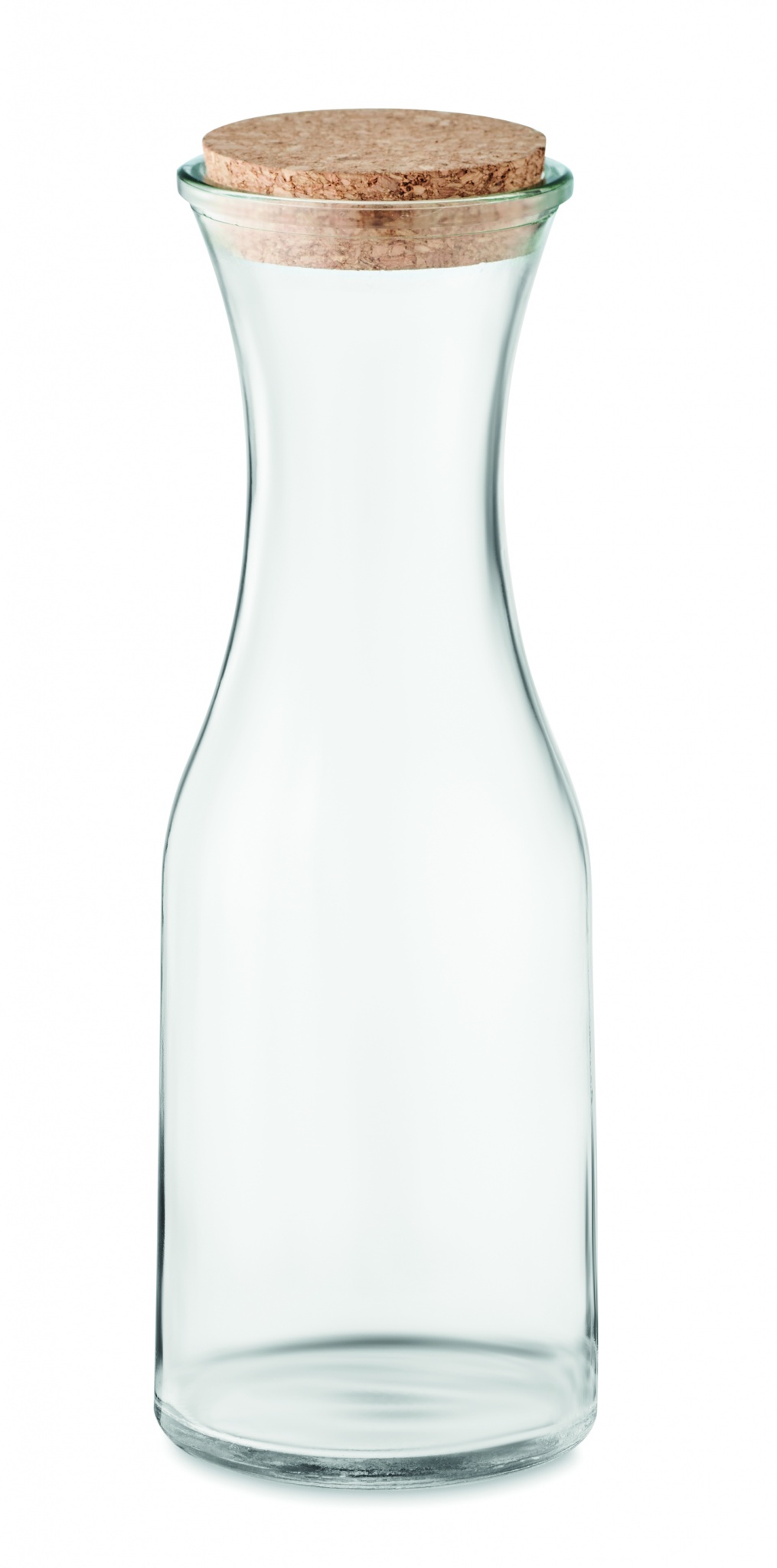 Kierrätetystä lasista valmistettu litran karahvi korkki kannella.