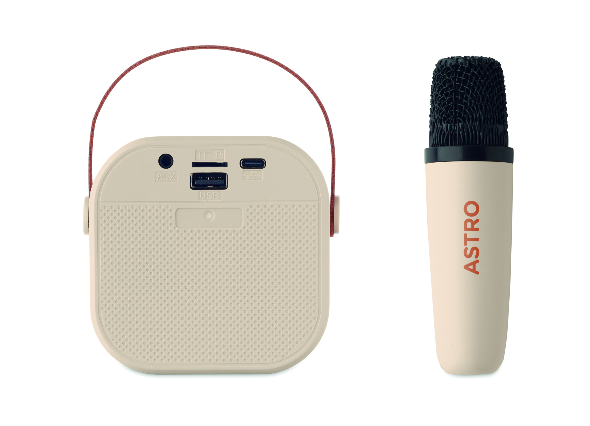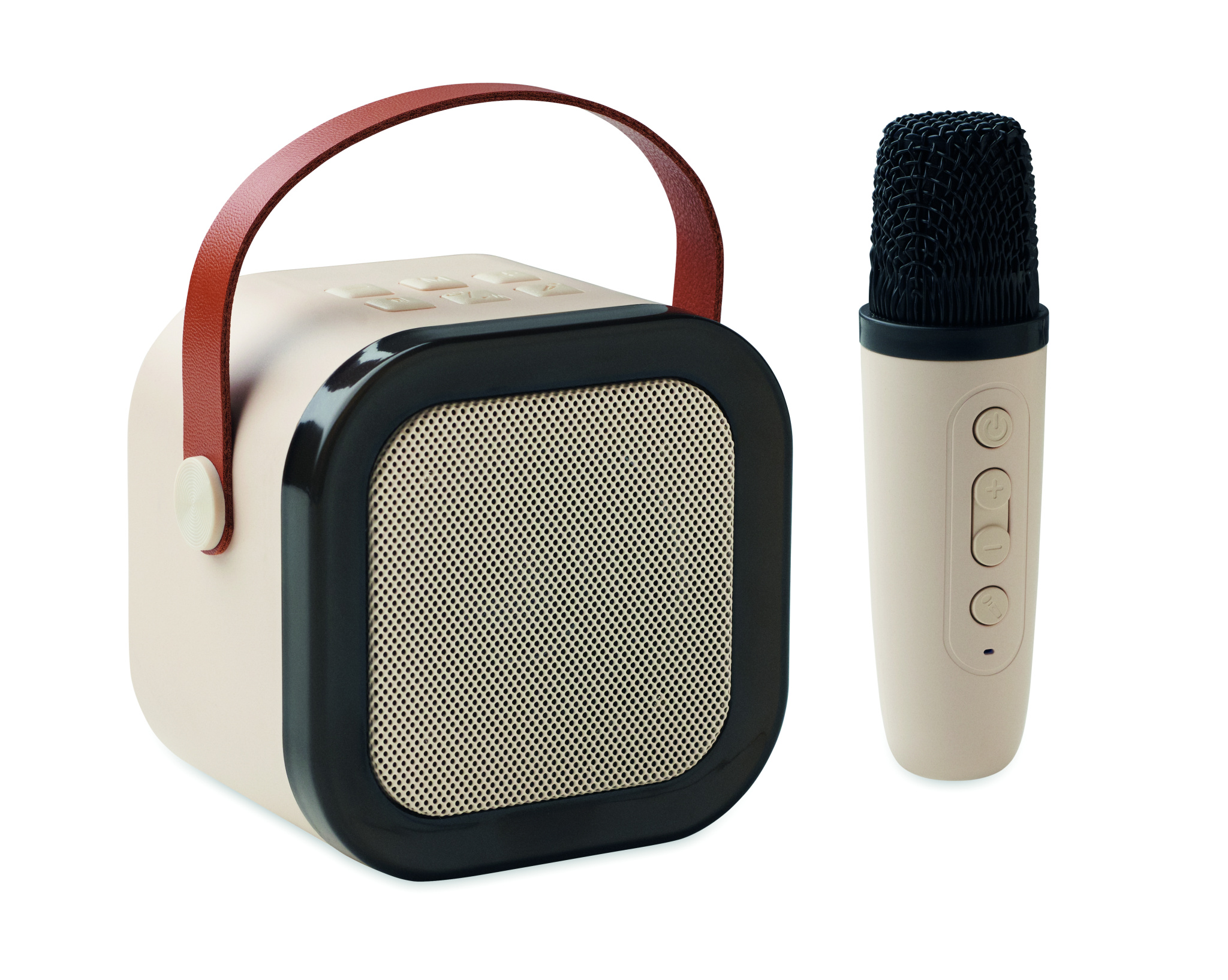 Karaokesetti, johon kuuluu 5 W:n langaton kaiutin kierrätetystä ABS-muovista ja väriä vaihtavalla LED-valolla, PU-kahva ja mikrofoni. Sisäänrakennettu 800 mAh:n akkukaiutin ja 400 mAh:n akkumikrofoni. Toistoaika noin 3 tuntia.