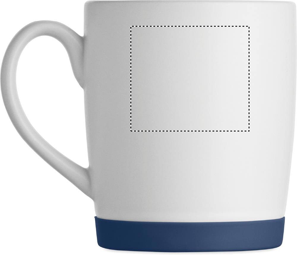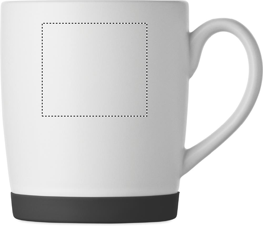 Keraaminen muki, jossa valkoinen mattapinta ja silikonipohja vakauden takaamiseksi. Tilavuus 300 ml. Yksittäispakattu valkoiseen pahvilaatikkoon.