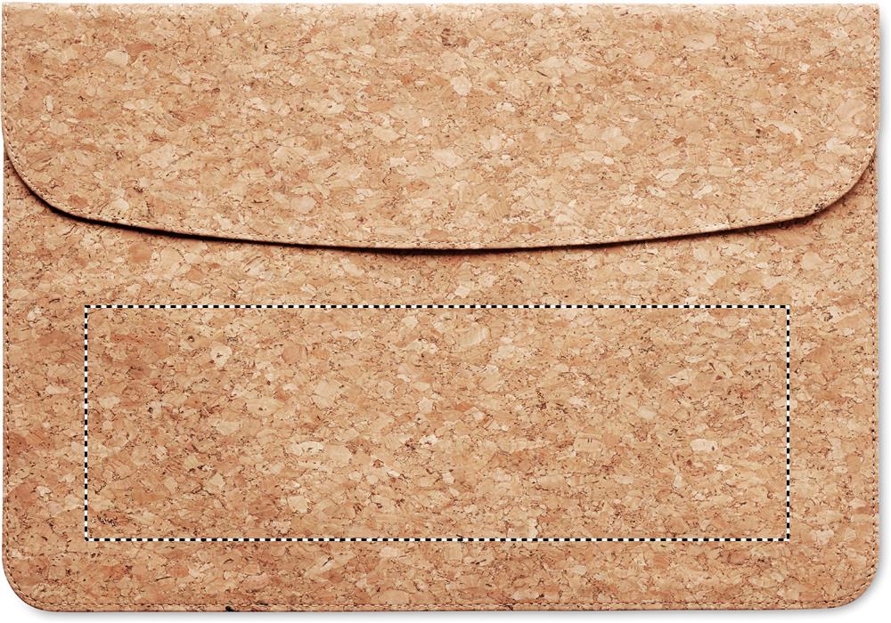 14 tuumainen korkki tietokonelaukku, magneettisella sulkimella. Koko 37x26 cm. Korkki on luonnonmateriaali, strukturaalinen laatu ja pinnan huokoisuus voi aiheuttaa eroavaisuuksia tuotteissa painatuksen jälkeen