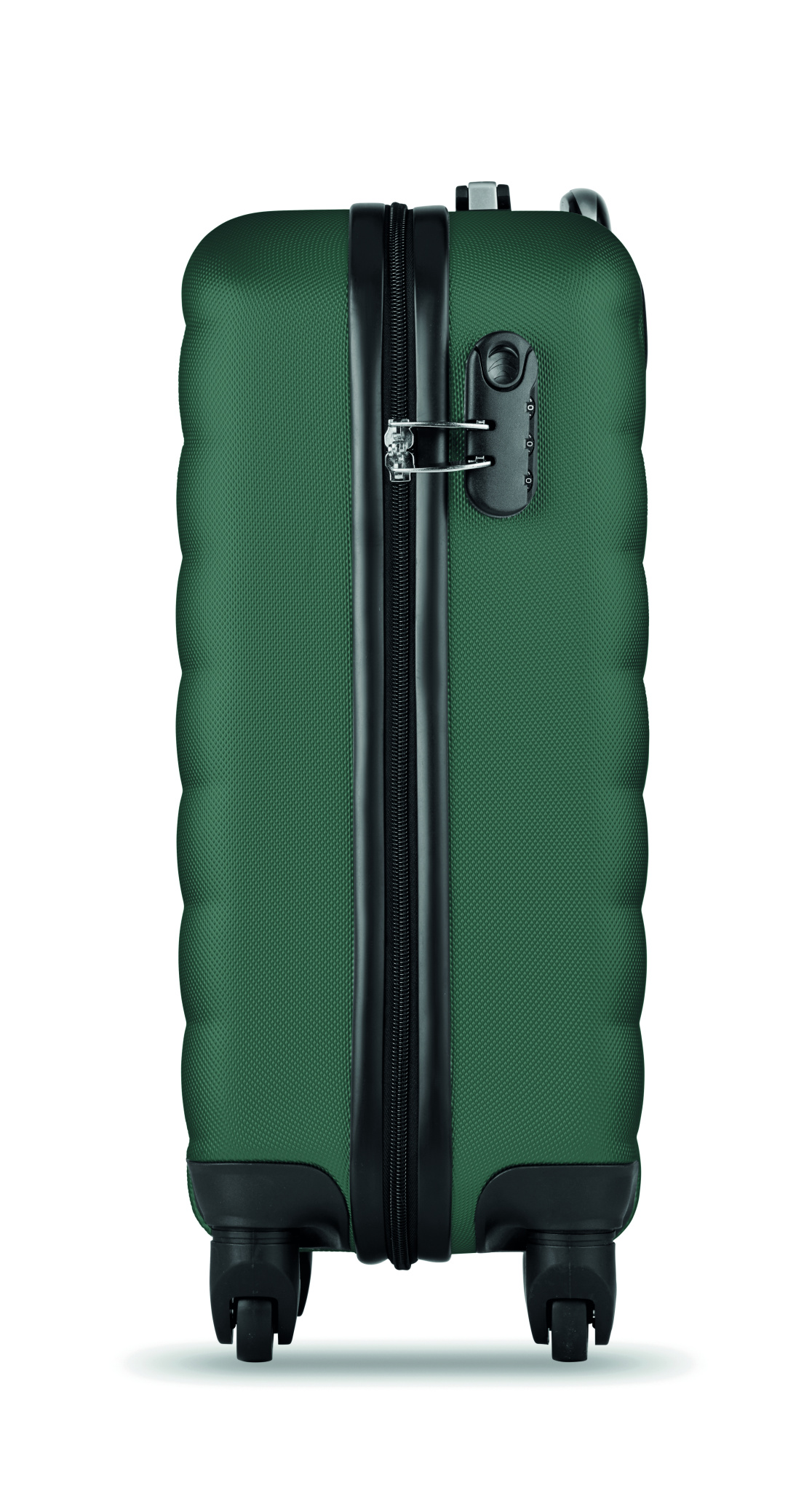 ABS- muovinen 20 tuuman kovakuorinen, sisältää turvalukon. Alla 4 pyörää.