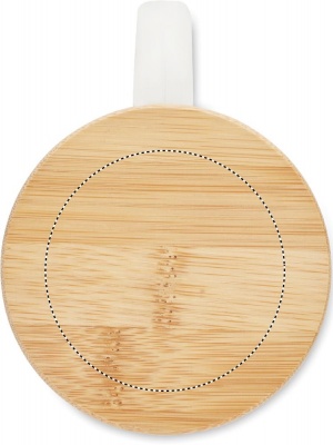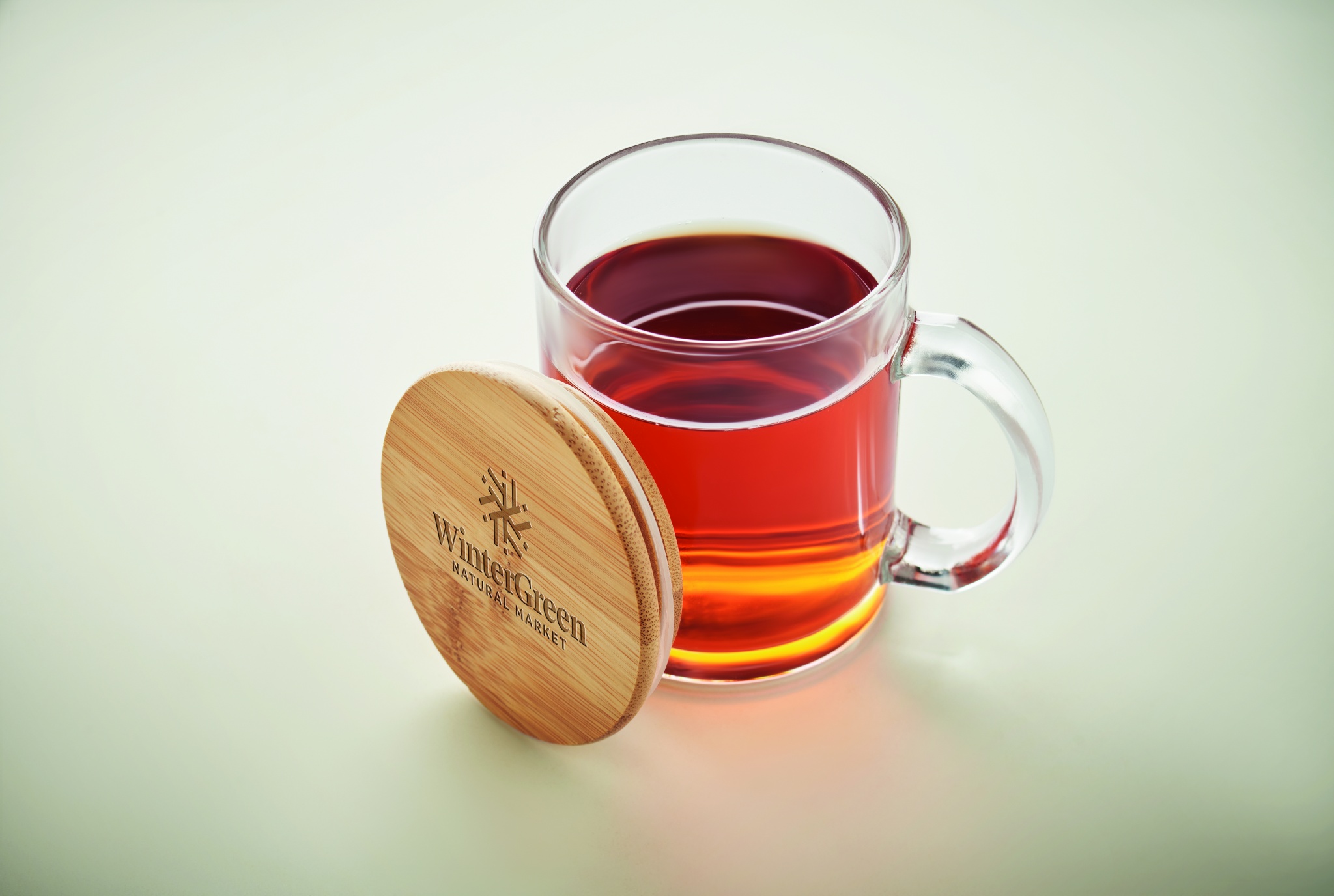 Kierrätyslasimuki bambukannella. Tilavuus: 300 ml.