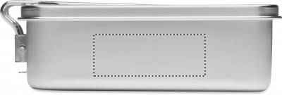 Ruostumattomasta teräksestä valmistettu lounas/eväsrasia, jossa on irrotettava lukituskahva. Tilavuus: 750 ml.