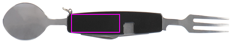 Ruostumattomasta teräksestä valmistetut kaksiosaiset retkeilyaterimet. Se voidaan halkaista keskeltä niin, että saat veitsen ja haarukan tai pullonavaajan ja lusikan. Kaiverrustamme logosi toiselle puolelle.