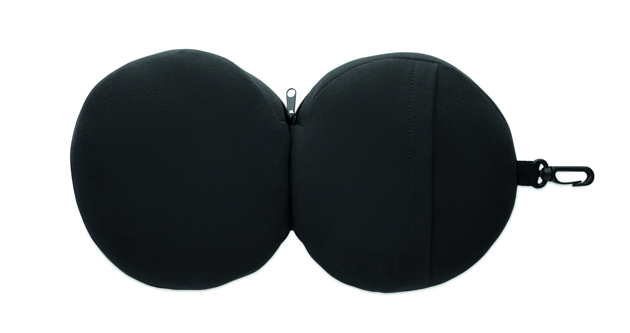 2-in-1-matkatyyny, johon on kiinnitetty silmämaski.