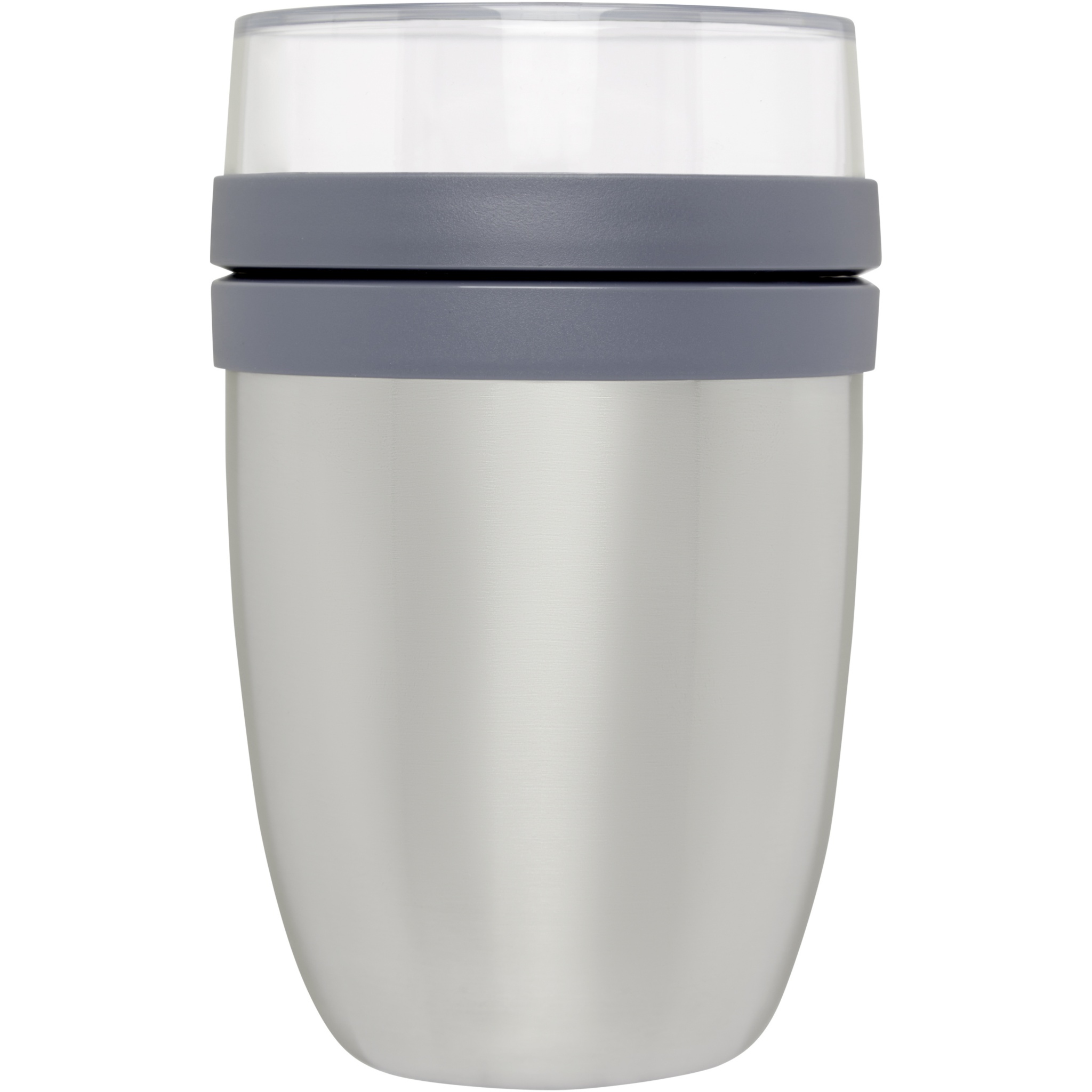 Lounasrasia, jossa on kaksi lokeroa, jotta ainesosat voidaan pitää erillään. Molemmissa lokeroissa on erillinen kansi, jotta ainesosat eivät sekoittuisi. Pitää sisällön kuumana 10 tuntia tai kylmänä 16 tuntia. Jotta ruoka pysyisi kuumana tai kylmänä mahdollisimman kauan, on suositeltavaa huuhdella lounasastia kuumalla tai jääkylmällä vedellä ennen täyttämistä. Ylimmän läpinäkyvän osaston tilavuus on 200 ml, mikä tarkoittaa, että siihen mahtuu noin 75 grammaa kiinteää ruokaa. Pohjasäiliön tilavuus on 500 ml. Valmistettu kestävästä materiaalista ja astian ulkopinta pysyy viileänä ja kuivana. Käsinpesu on suositeltavaa. Korkin muoviosat voidaan laittaa astianpesukoneeseen. Vuotamaton. BPA-vapaa. 2 vuoden Mepal takuu.