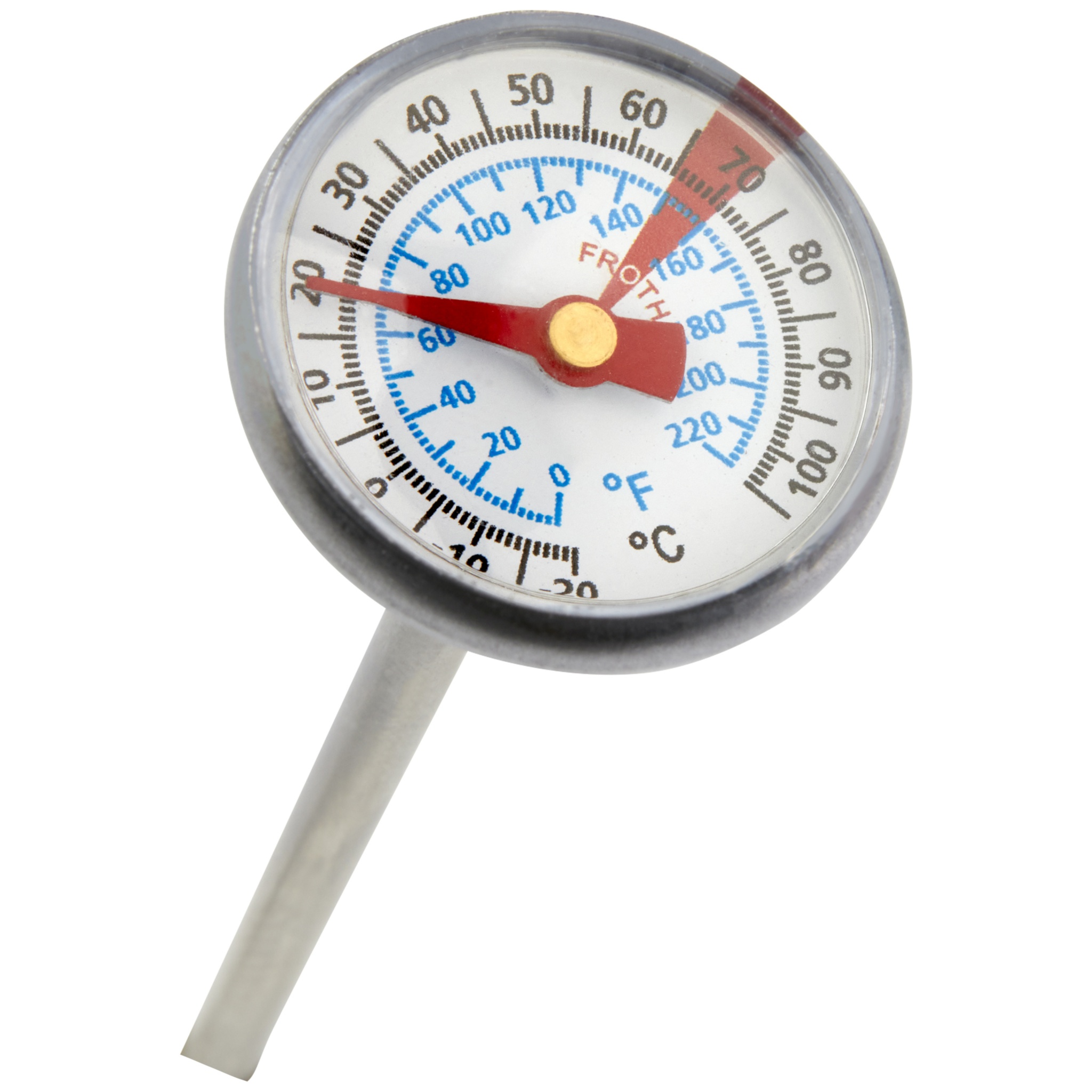 Grillauspaistomittari, mittausalueet sekä °C:issa että °F:issa. Mekaanista induktiota voidaan mitata suoraan ja tarkasti friteerausastiassa, paistettaessa tai grillauslämpötilaa hallittaessa. Kestävä ruostumattomasta teräksestä valmistettu kotelo on jämäkkä eikä syövy. Helppo käyttää ja puhdistaa.