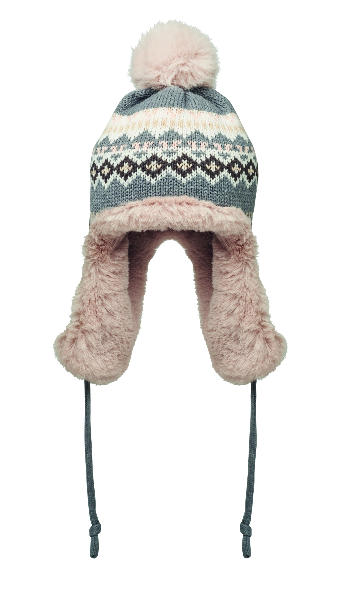 Neulottu pipo, jossa korvaläpät ja tupsu akryylikuidusta, polyesteri- ja fleecevuori. Mukana toisella puolella painatuspaikkaa varten tarkoitettu merkki. Aikuisten koko.