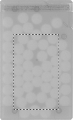 Pastillien annostelija luottokortin muodossa, sisältää 8 grammaa pastilleja.