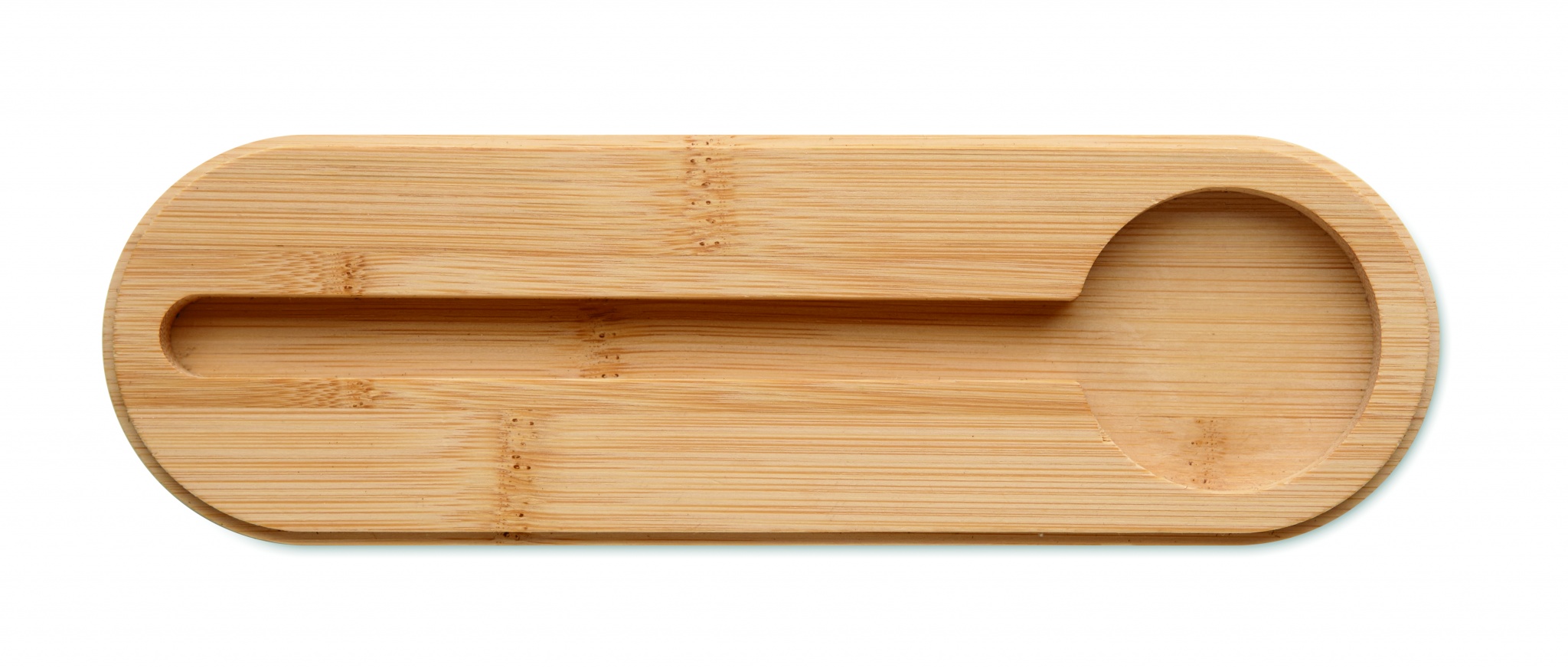 RPET-huopapenaali, jossa on bambukansi ja integroitu puhelinpidike. Viivoitin: 5 ,5 tuumaa ja 13,5 cm. Joustava sulkuhihna.