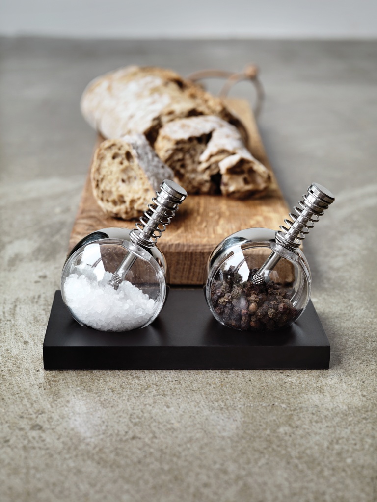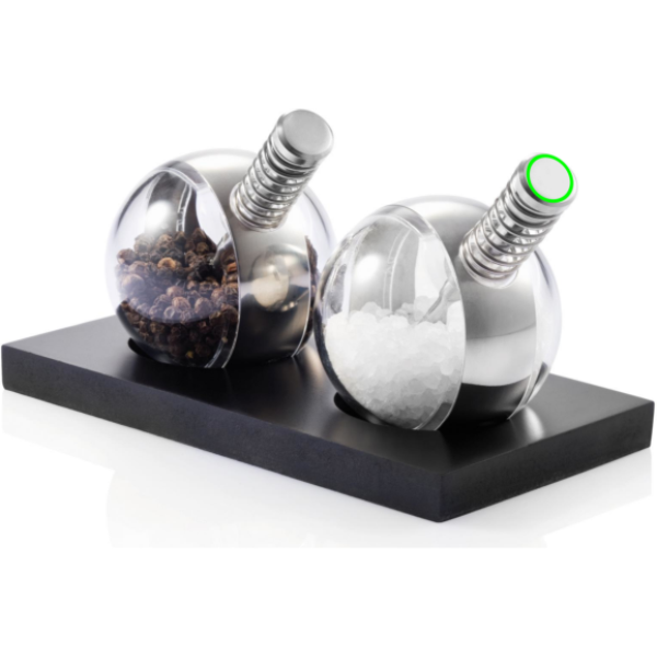 Hauskat pallonmuotoiset maustemyllyt, akryylia, kumipintaisella alustalla. Rekisteröity designtuote®