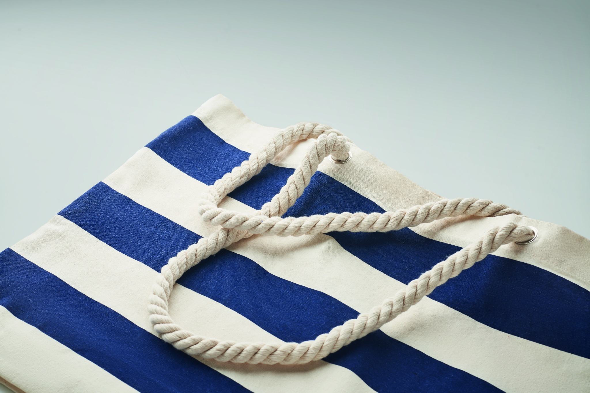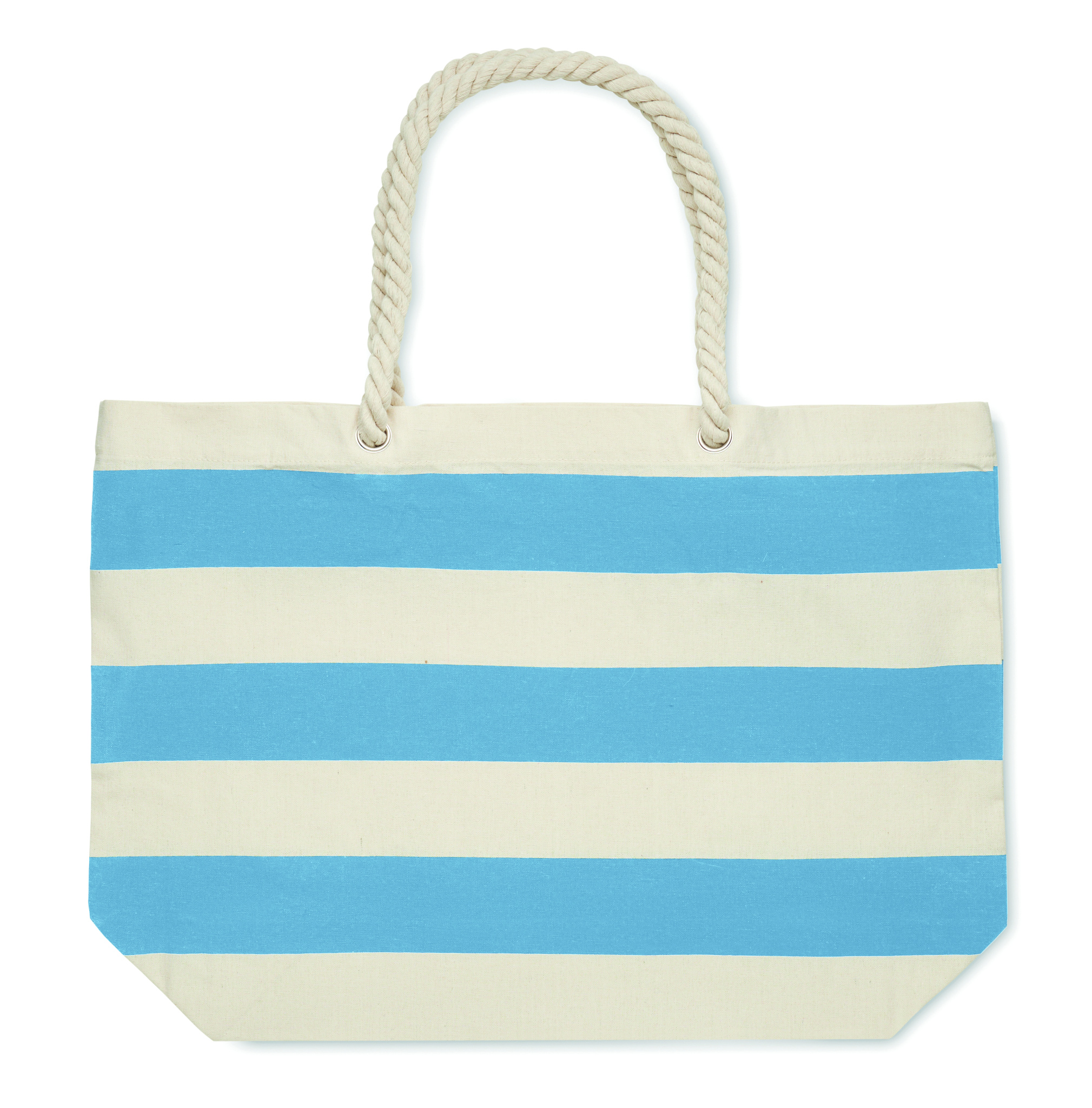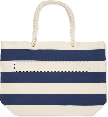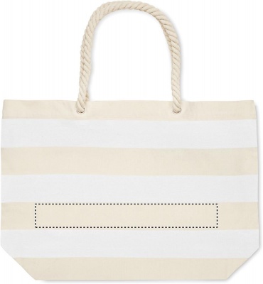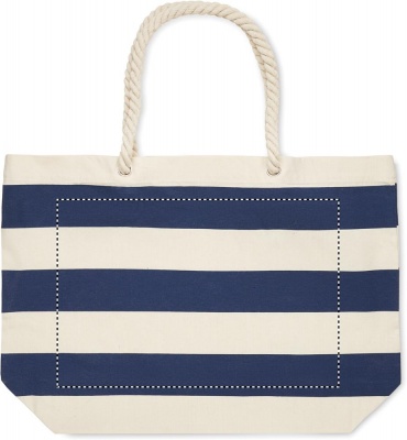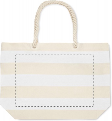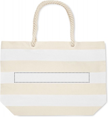 Raidallinen ranta- tai ostoskassi puuvillaa, jossa on narukahva. 220 gr/m².