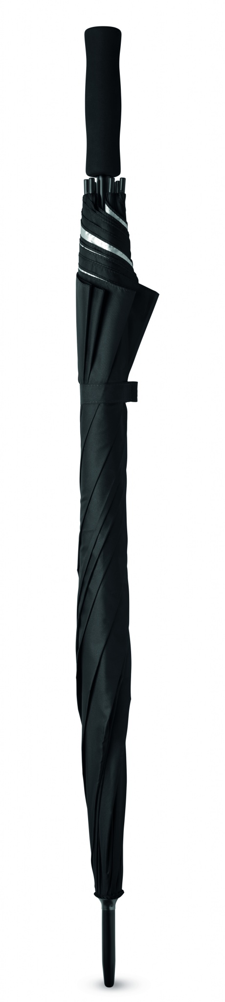 190T polyesterinen 27 tuuman automaattinen sateenvarjo, kromattu teräsakseli. Mustalla päällystetty metallivarsi ja ruoteet, muovikärki. Suora musta EVA-kahva, sisältää samanvärisen suojapussin.