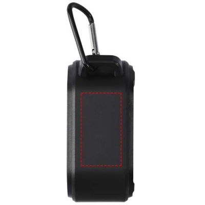 Logo trade mainostuote kuva: Solo 3 W:n IPX5 RCS -kierrätetystä muovista valmistettu, aurinkoenergialla toimiva Bluetooth®-kaiutin jousihaalla