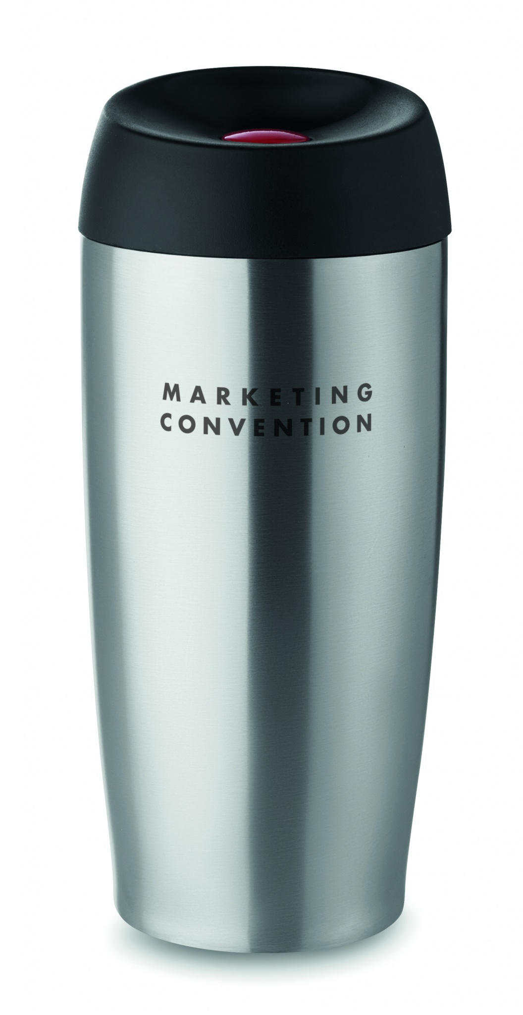 Kaksiseinäinen ruostumattomasta teräksestä valmistettu 350 ml termosmuki, PP- kansi painomekanismilla, vuoto vapaa.