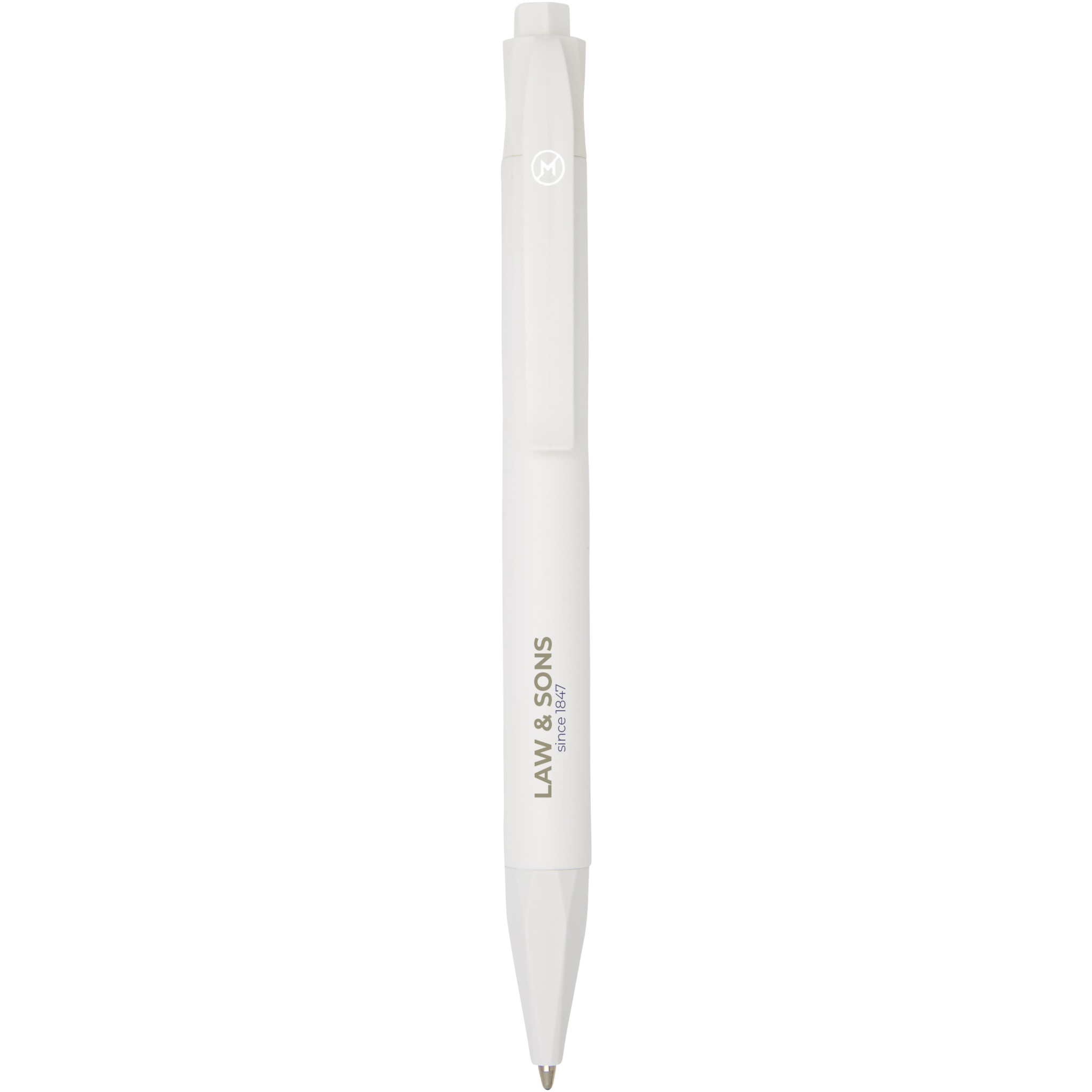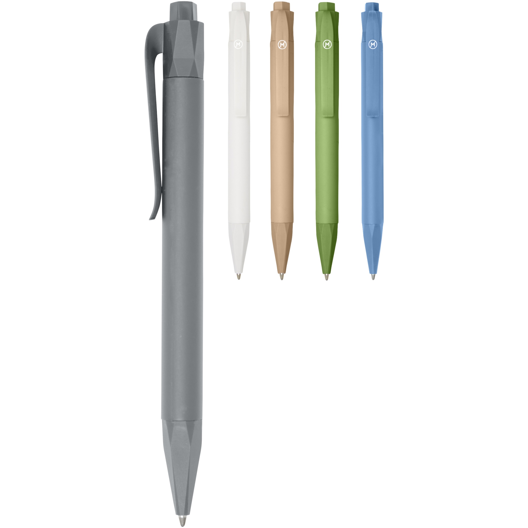 Napsautettava pitkäkestoinen ja uudelleentäytettävä kuulakärkikynä, joka on valmistettu 100-prosenttisesti PLA:sta (maissimuovi), mikä vähentää käytetyn muovin määrää. Sisältää patruunan, jolla kirjoitat noin 2 000 metriä. Kynä toimitetaan vakiona sinisellä patruunalla. Pakattu kartonkiseen kynäsuojukseen.