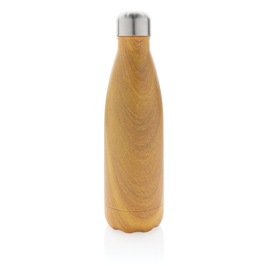 Tyhjiöpullo ruostumattomasta teräksestä puupainatuksella
