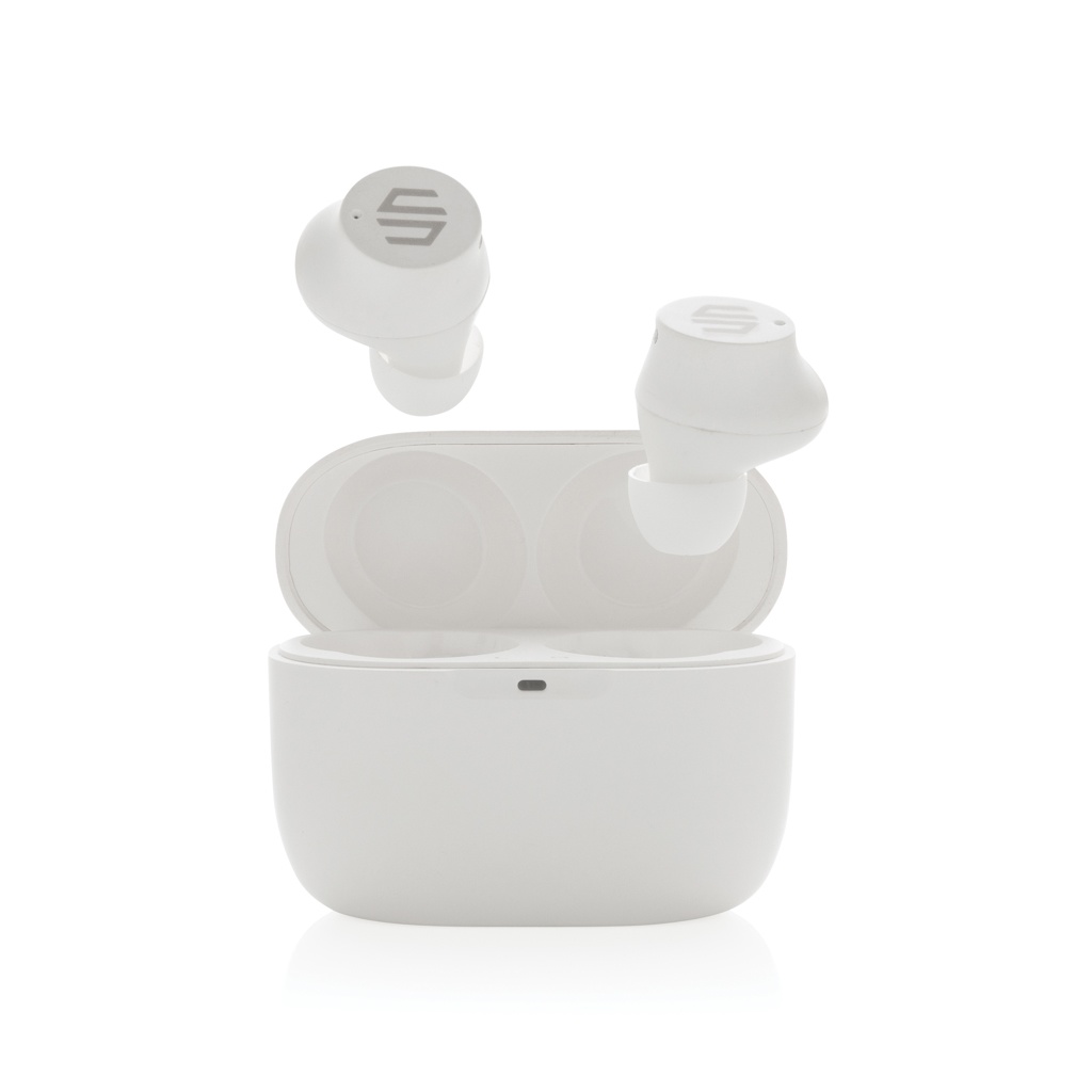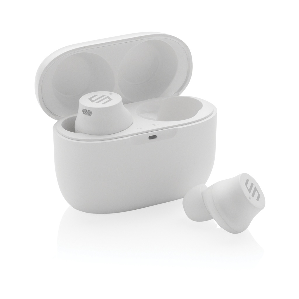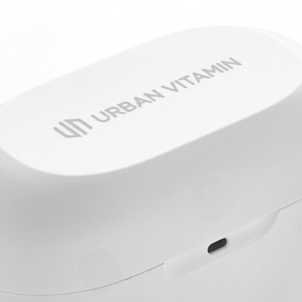 Kun avaat kotelon ja laitat kuulokkeet korviisi, iskee intensiivinen bassoääni. Miten näin pienikokoinen ja helposti mukaanotettava tuote voi tuottaa niin rikkaan ja syvän äänen? Kuulokkeet ja latauskotelo on suunniteltu siten, että ne mahtuvat helposti taskuusi. Mukavissa kuulokkeissa on jopa 5 tunnin toistoaika, ja latauskotelon avulla toistoaikaa riittää jopa 20 tunnin ajaksi. Akkua riittää siis koko päiväksi! Kun saat puhelun, yksinkertaisesti vastaa siihen stereoäänellä kiitos 2 sisäänrakennetun mikrofonin. Sisäänrakennettu kosketusohjain, jonka avulla vastaat puheluihin nopeasti. IPX 5 -luokitus tekee kuulokkeista sään-, hien- ja roiskeenkestävät, joten ne sopivat myös ulkokäyttöön. Urban Vitamin tuotteet on valmistettu ilman PVC:tä ja pakattu pakkauksiin, joissa on käytetty vähemmän muovia.