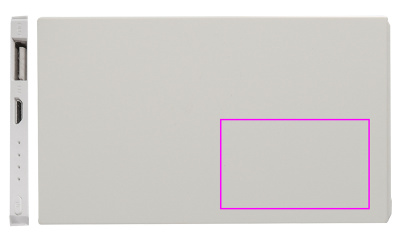 Powerbank, jonka kapasiteetti on 2200 mAH ja latausilmaisin, sis. USB-latauskaapeli. Joten älypuhelimesi voidaan ladata liikkeellä ollessasi. Tulostamme logosi UV-painatuksella (CMYK) suoraan virtapankkiin.