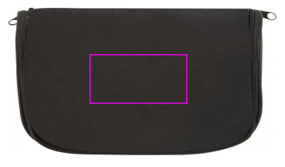 190T nylon-wc-laukku, jossa on suuri sisälokero, 3 vetoketjullista lokeroa, 4 kuminauhaa ja ripustuskoukku. Painamme logosi etupuolelle.