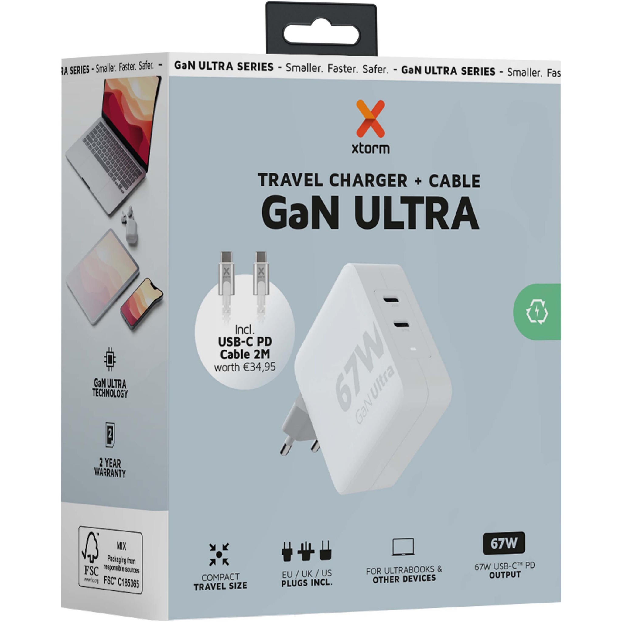 Xtorm XVC2067 GaNUltra 67 W matkalaturi 100 W USB-C PD -kaapelilla, Valkoinen