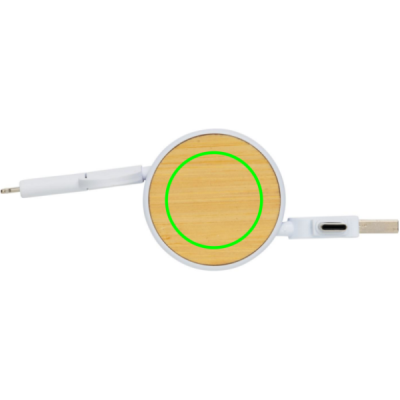Kompaktiškas ir lengvai nešiojamas ištraukiamas daugiafunkcis kabelis, pagamintas iš sertifikuotų perdirbtų medžiagų. Yra su 5 skirtingomis jungtimis: USB C įvestis, USB A įvestis, C tipo išvestis, IOS išvestis ir mikro USB išvestis. Tai taip pat leidžia naudoti laidą su C tipo išvesties įrenginiais, kurie yra naujesnės kartos telefonuose ir „Macbook“ kompiuteriuose. Kabelis taip pat turi USB A išvesties įvesties parinktį, todėl jis gali įkrauti bet kurį įrenginį iš bet kurio išvesties šaltinio. Korpusas pagamintas iš FSC bambuko ir RCS sertifikuoto perdirbto ABS, kabeliai pagaminti iš RCS sertifikuotos perdirbtos TPE medžiagos. Bendras perdirbtas turinys: 63% pagal bendrą prekės svorį. Maksimalus laido ilgis: 100 cm. Supakuota į FSC mišrią kraft rankovių pakuotę. RCS sertifikatas užtikrina visą sertifikuotą perdirbtų medžiagų tiekimo grandinę. Be PVC.