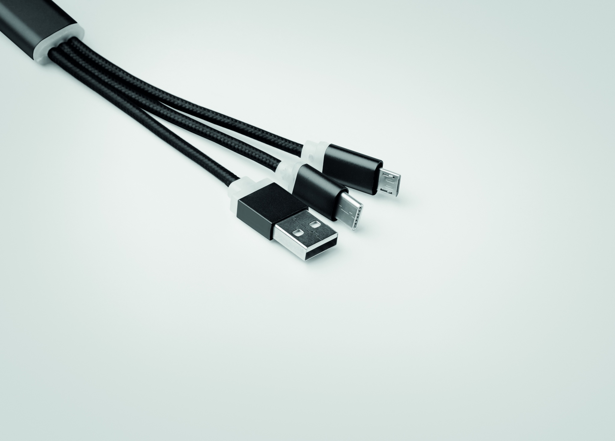 Atslēgu piekariņš ar uzlādes kabeli ar USB-A līdz Micro-B (2 vienā kontaktā) un C tipu.