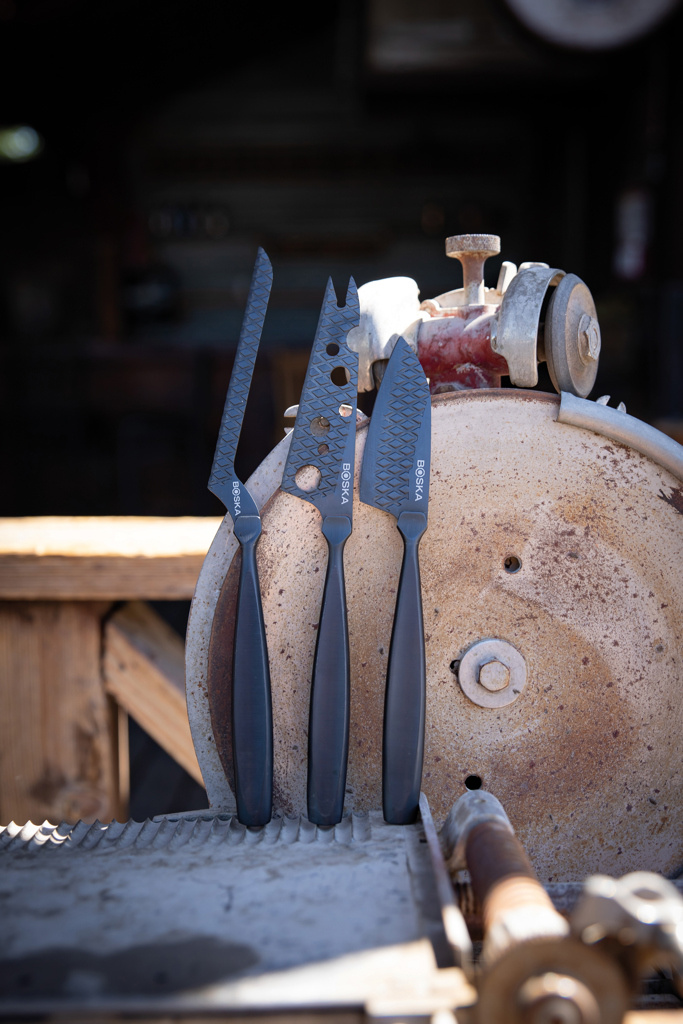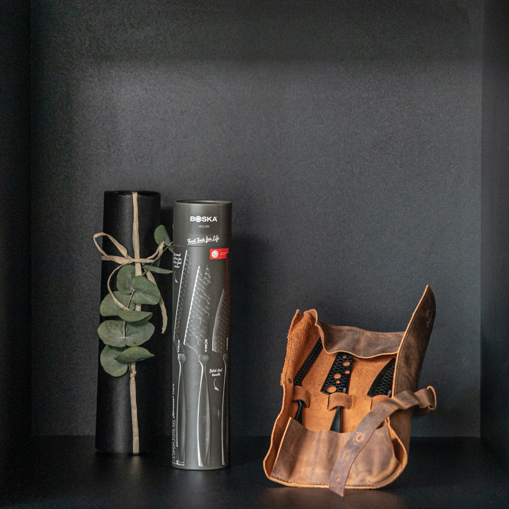 No mīksta Brī līdz cietam parmezānam, siera nažu komplekts Monaco+ Black no BOSKA – B Corporation sertificēta uzņēmuma – piedāvā perfektu griešanas risinājumu jebkura veida sieram. Šie unikālie nerūsējošā tērauda, nepiedegošie naži, komplektēti ar īstas ādas uzmavu, ir ideāla un stilīga dāvana īstiem siera cienītājiem un ēdiena gatavošanas entuziastiem. Šis komplekts ir drošs ledusskapī, mazgājams tikai ar rokām, un tam ir 10 gadu garantija.