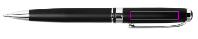 Augstas kvalitātes metāla pildspalva matēti melnā krāsā, ar spīdīgiem sudraba aplikācijām un elegantu korpusu. Mēs iegravēsim jūsu logotipu zem klipa.