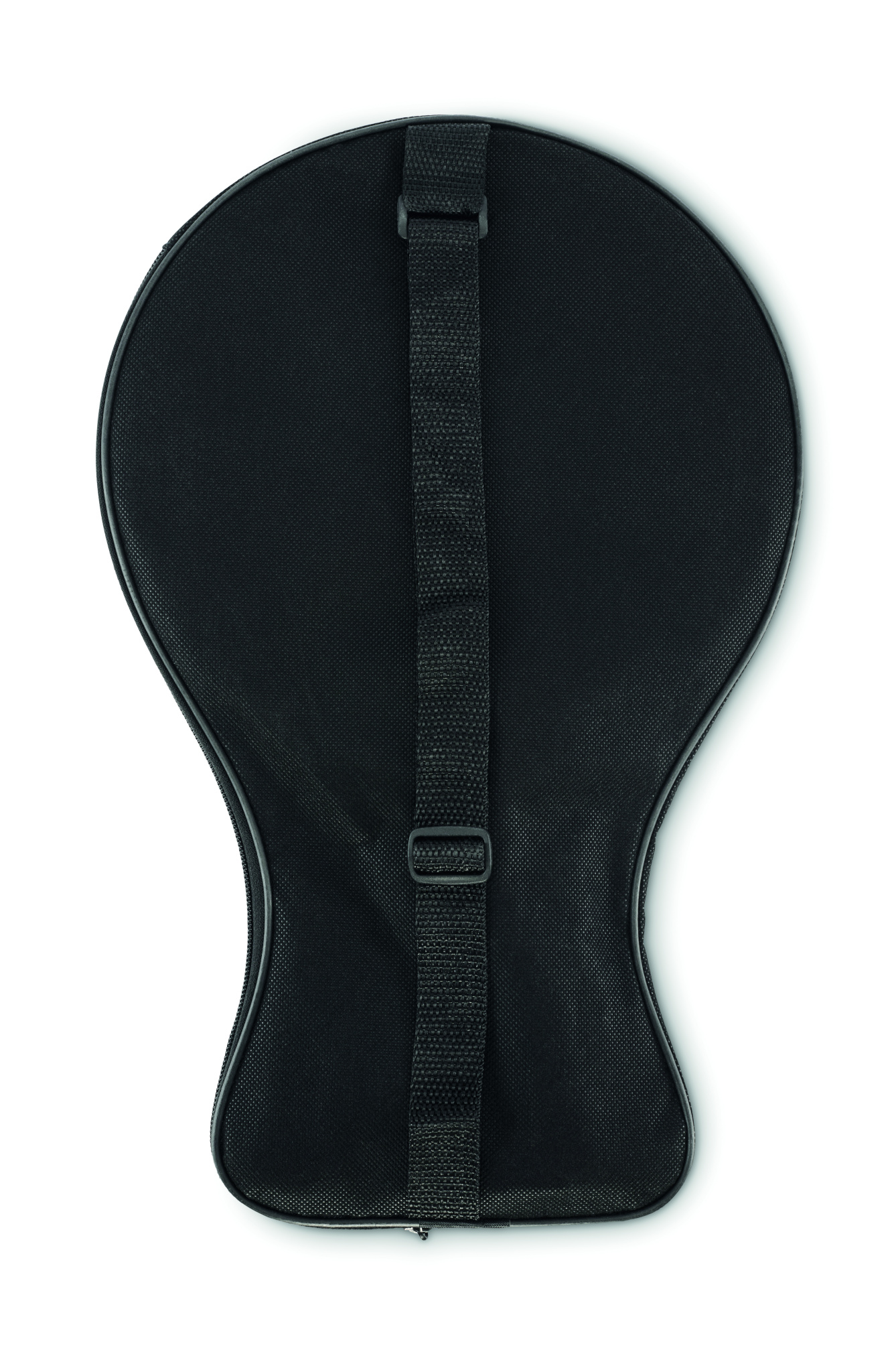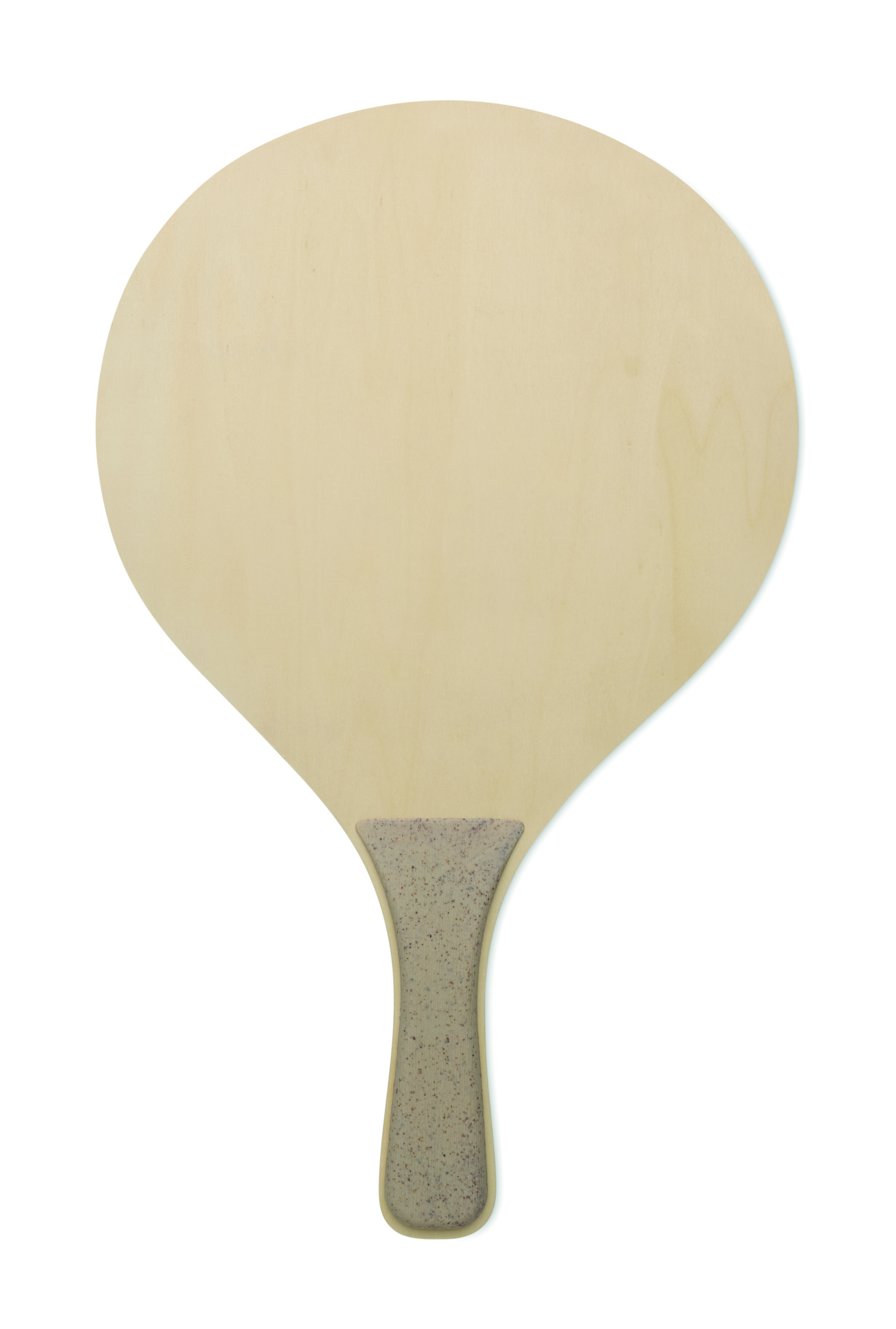 Beach set with 2 plywood rackets featuring a chess and ludo game boards. Includes 1 TPR ball, dice and checkers. Packed in RPET mesh zippered carrier bag.