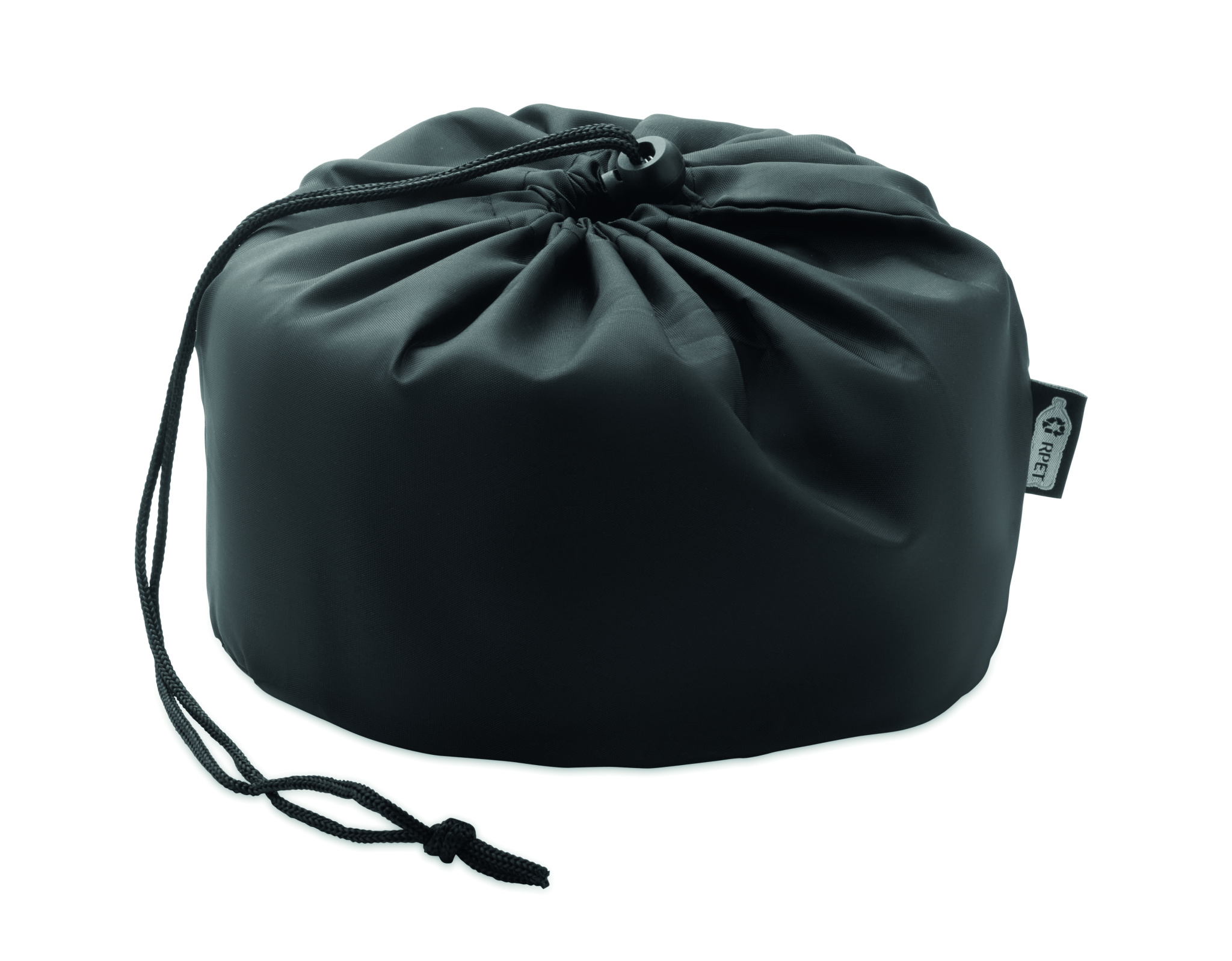 Bendable travel pillow made of soft polyester and foam. Includes RPET drawcord pouch for easy storage. Comfortable and compact for travel.