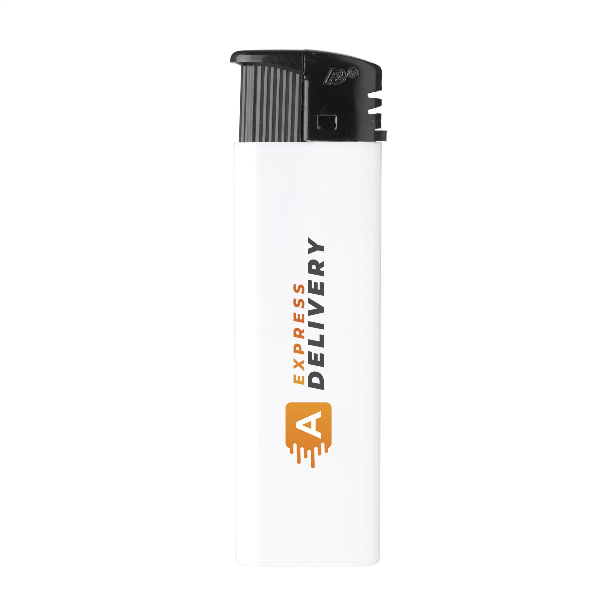 Электронная заправляемая зажигалка марки Flameclub® с регулируемым пламенем. Оснащена замком от детей. Сертификация NEN: EN13869. Сертификация TÜV и сертификация ISO: ISO9994.